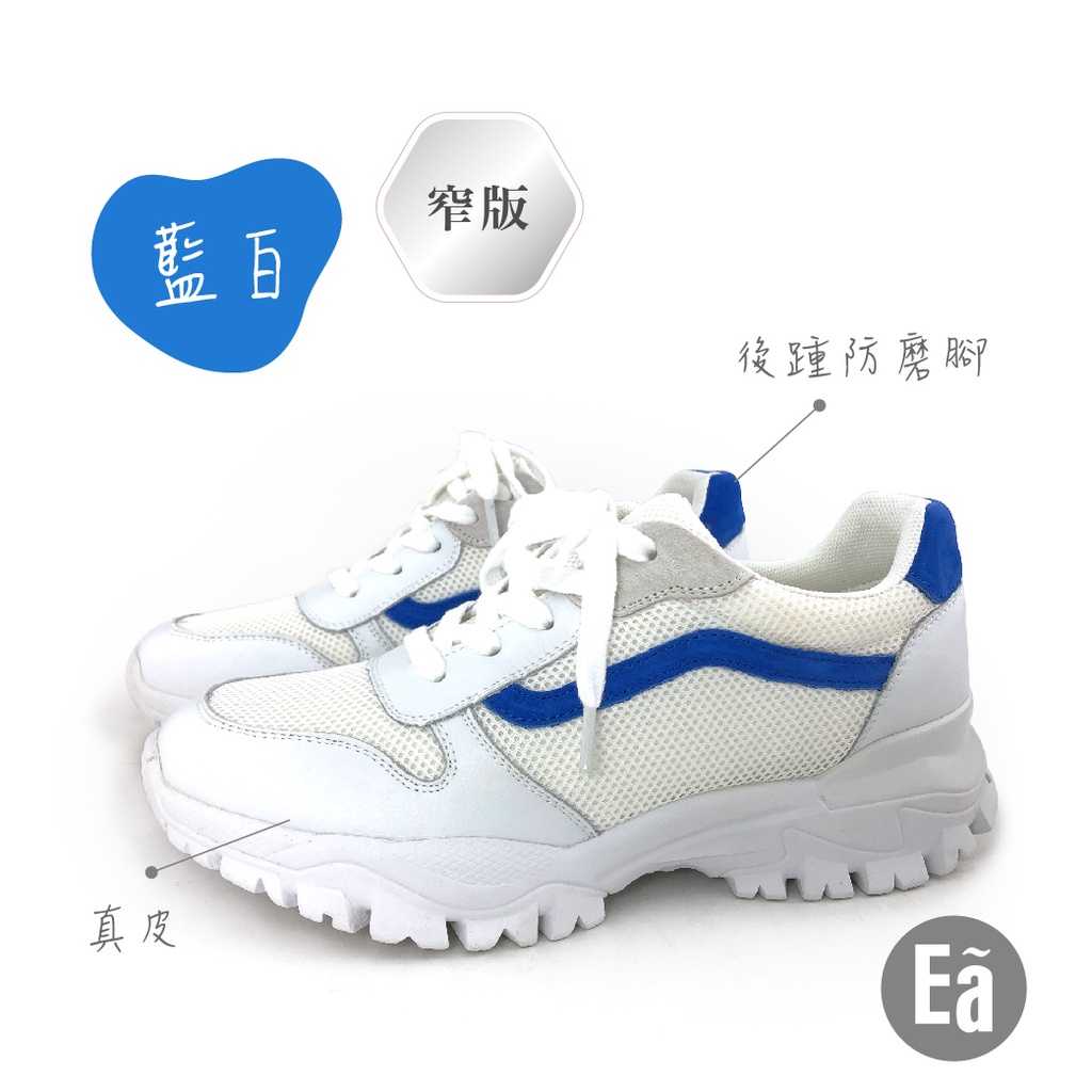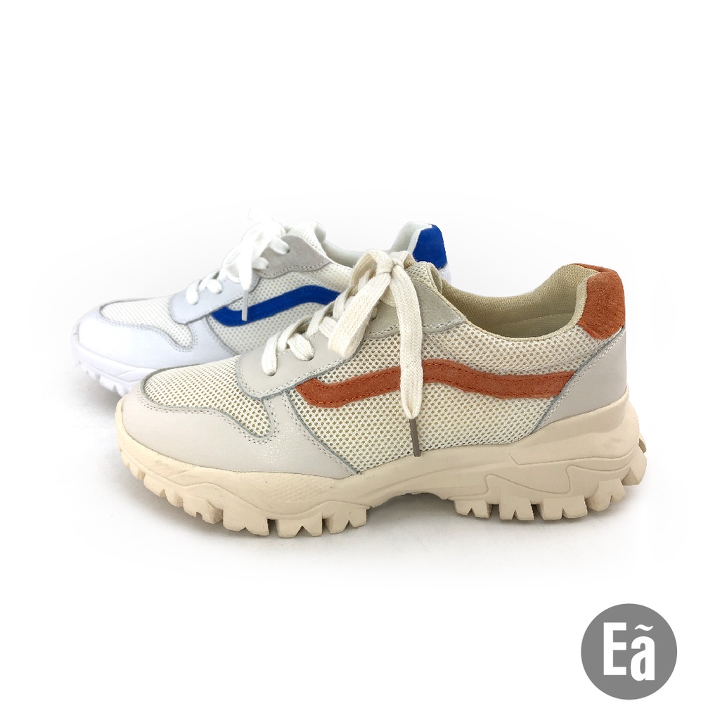Ea專櫃真皮女鞋 號時尚跳色拼接運動綁帶鞋 休閒鞋(桔米/藍白)9759
