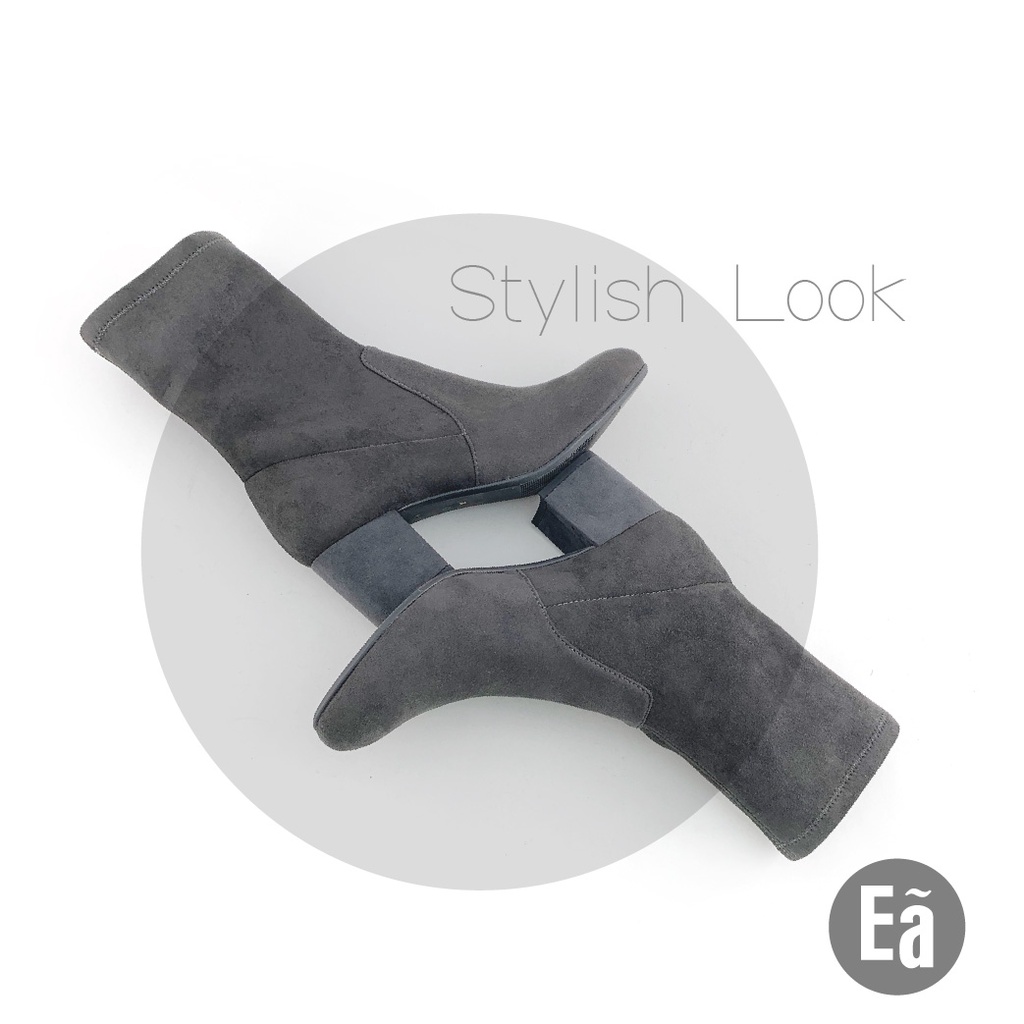 Ea專櫃真皮女鞋 零碼鞋35、36號 時尚腳步 絨毛布 素色 圓頭 粗跟 襪靴 中筒靴(駝色/霧灰/霧黑)8915