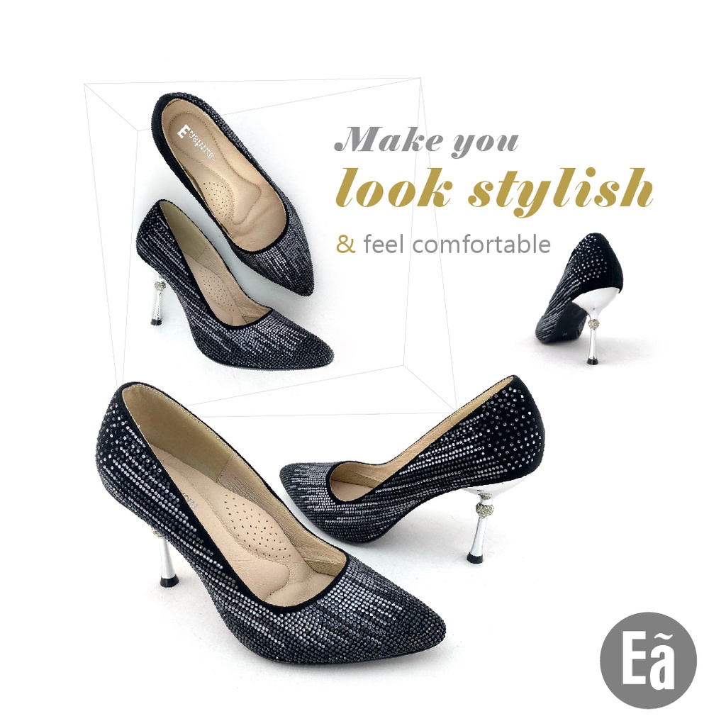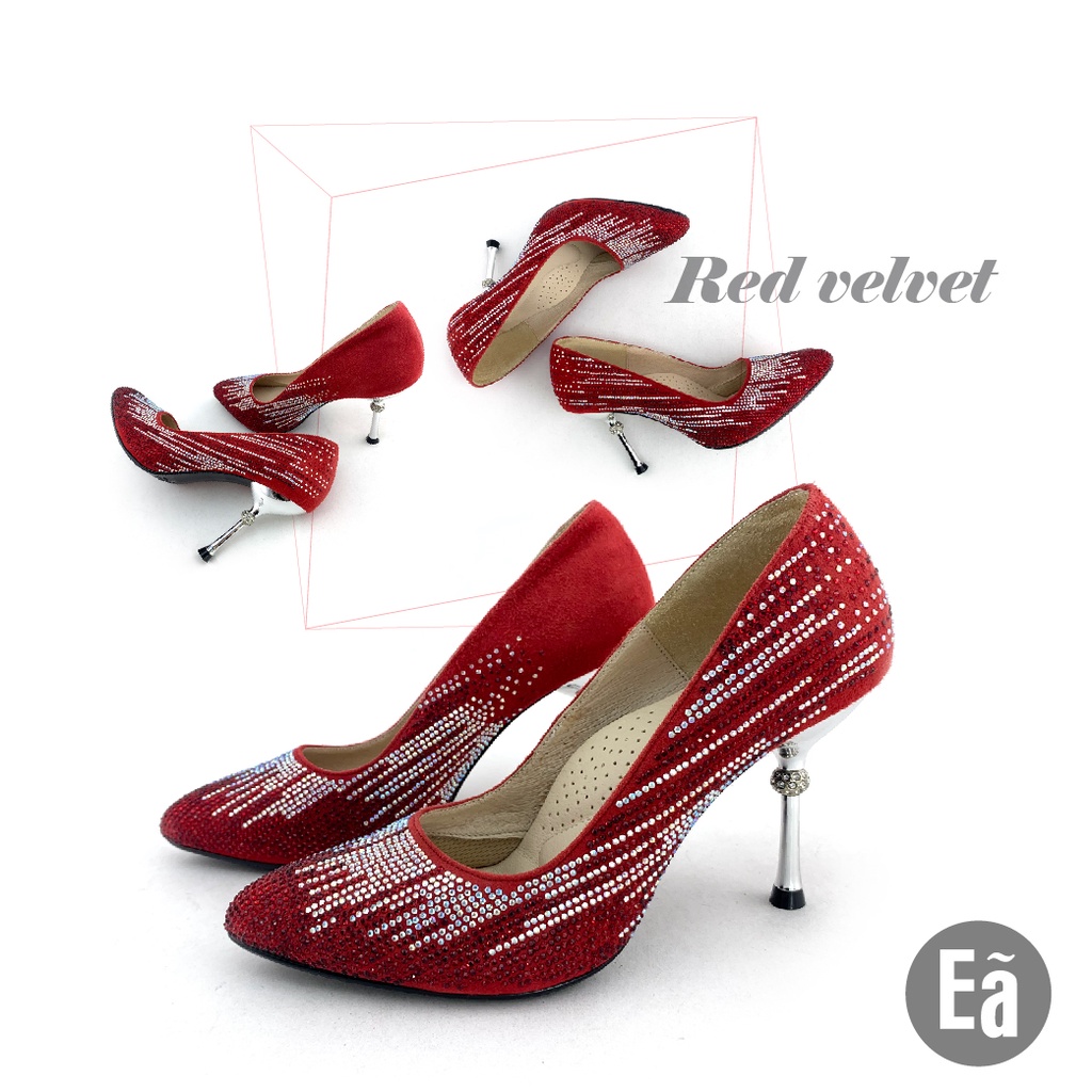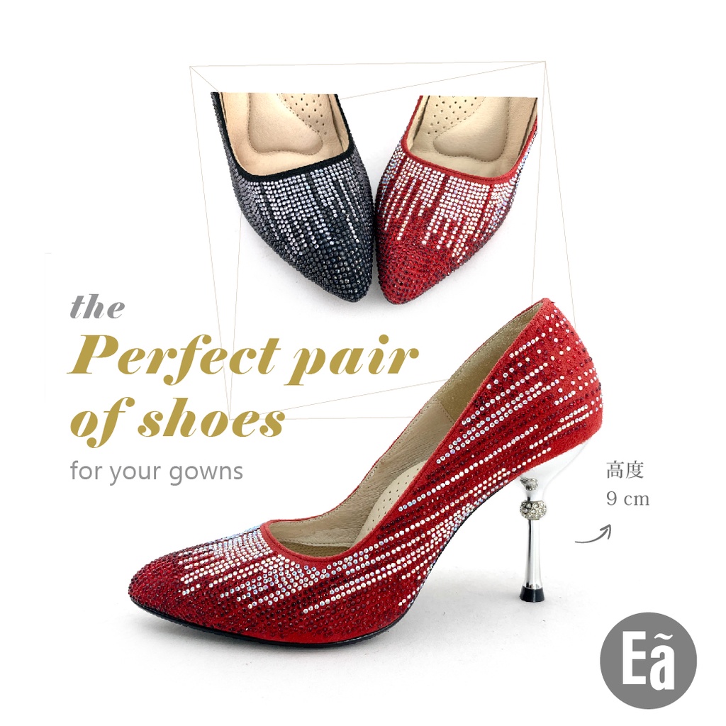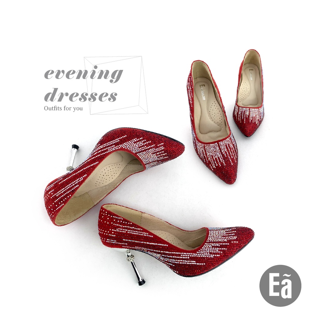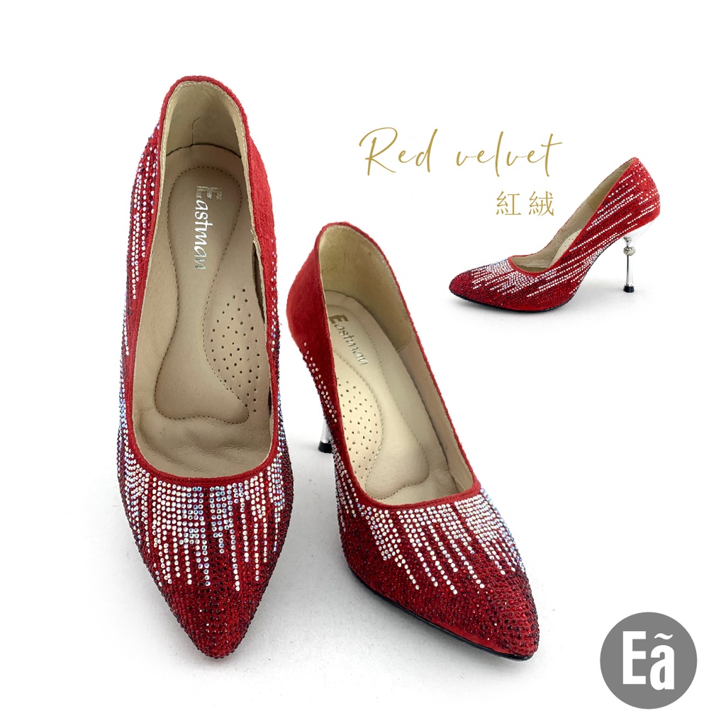Ea專櫃女鞋 流星雨 真皮雙色貼鑽 立體造型金屬跟 高跟鞋 晚宴鞋(紅/黑)5852