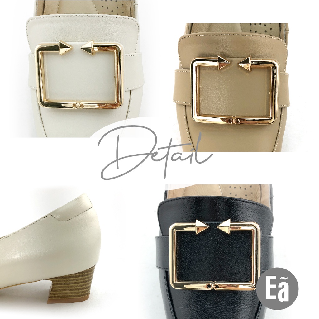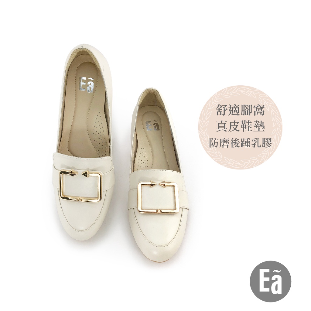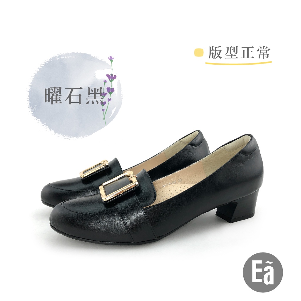 Ea專櫃真皮女鞋 零碼鞋 36號 風真皮簡約方形釦樂福中跟鞋(曜石黑)8204