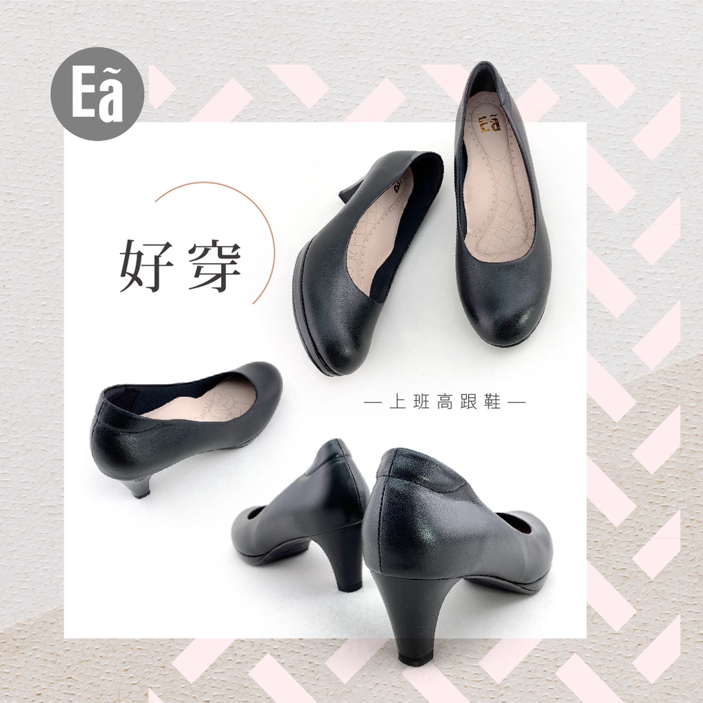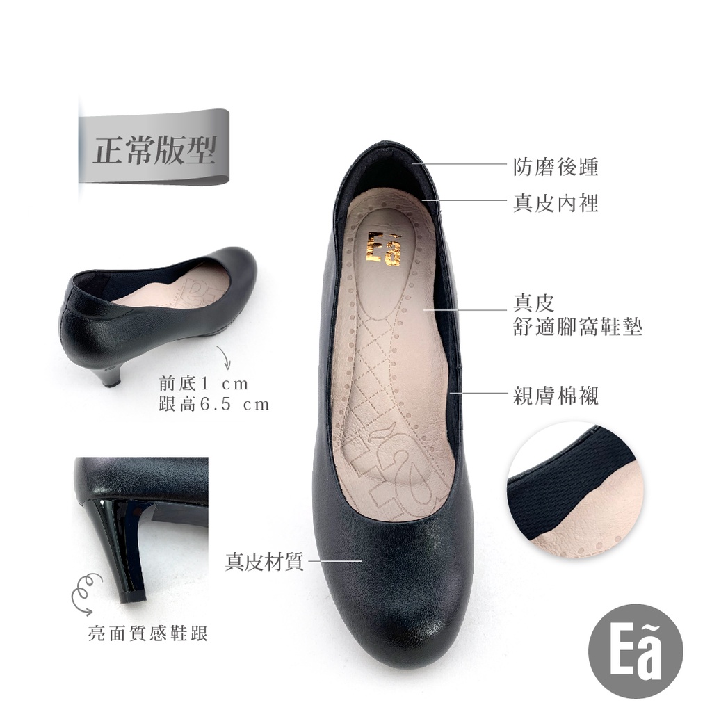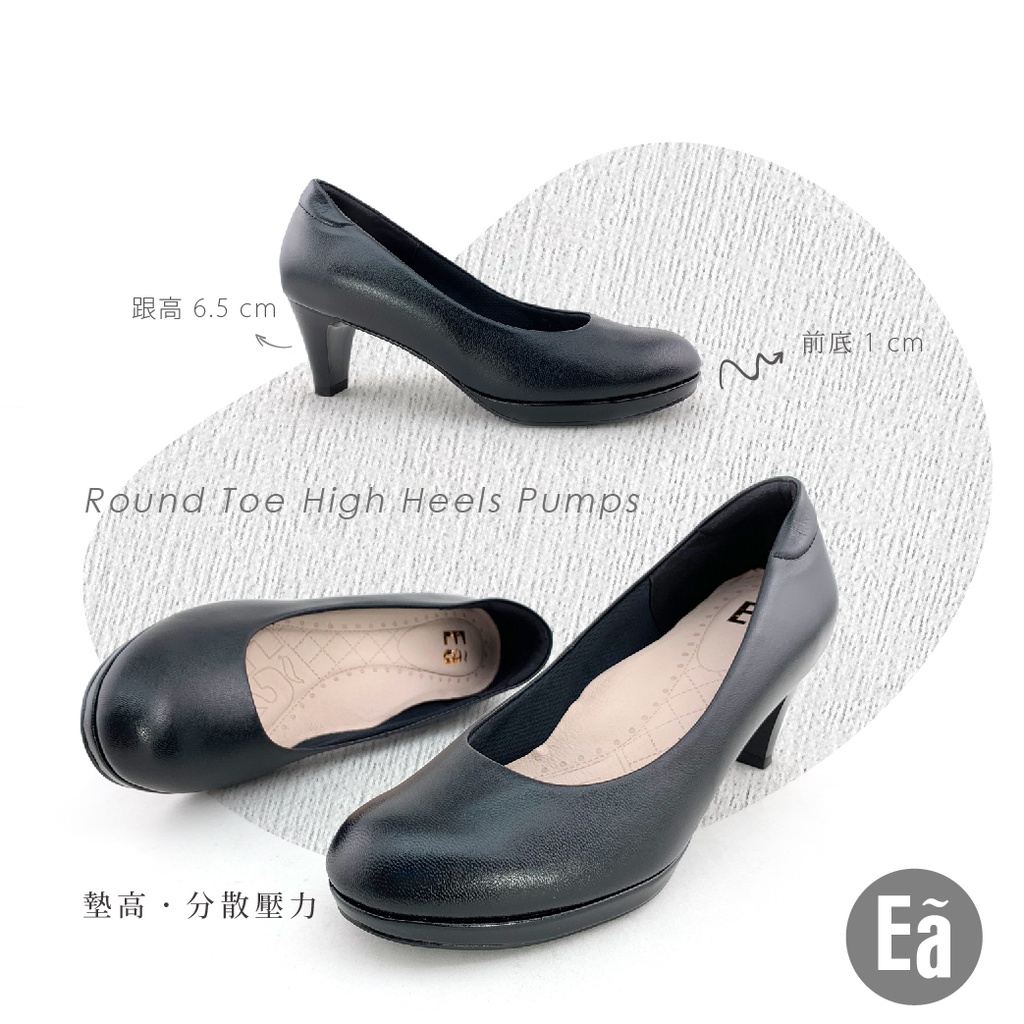 Ea專櫃真皮女鞋 零碼鞋26號 真皮圓頭素面 空姐 正裝 水台 6.5公分 制鞋 上班鞋 高跟鞋(黑)7503