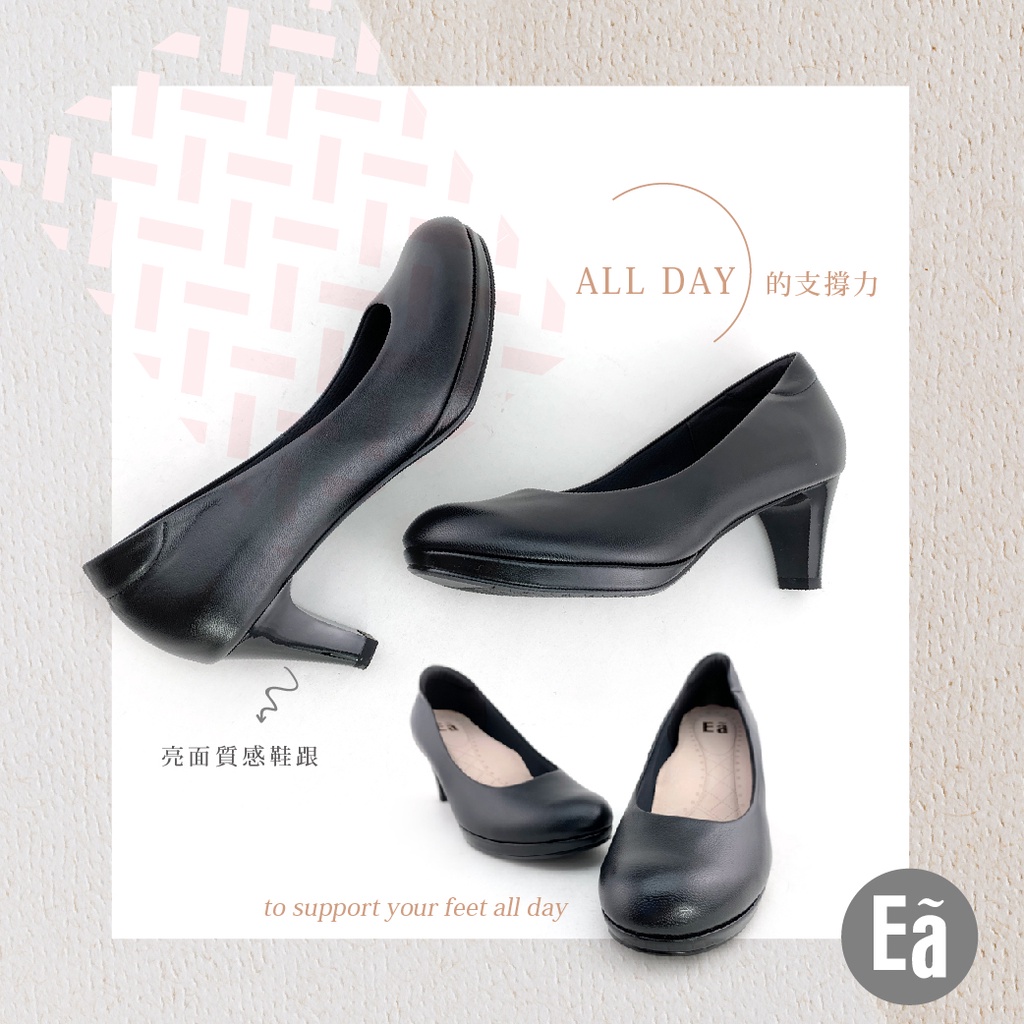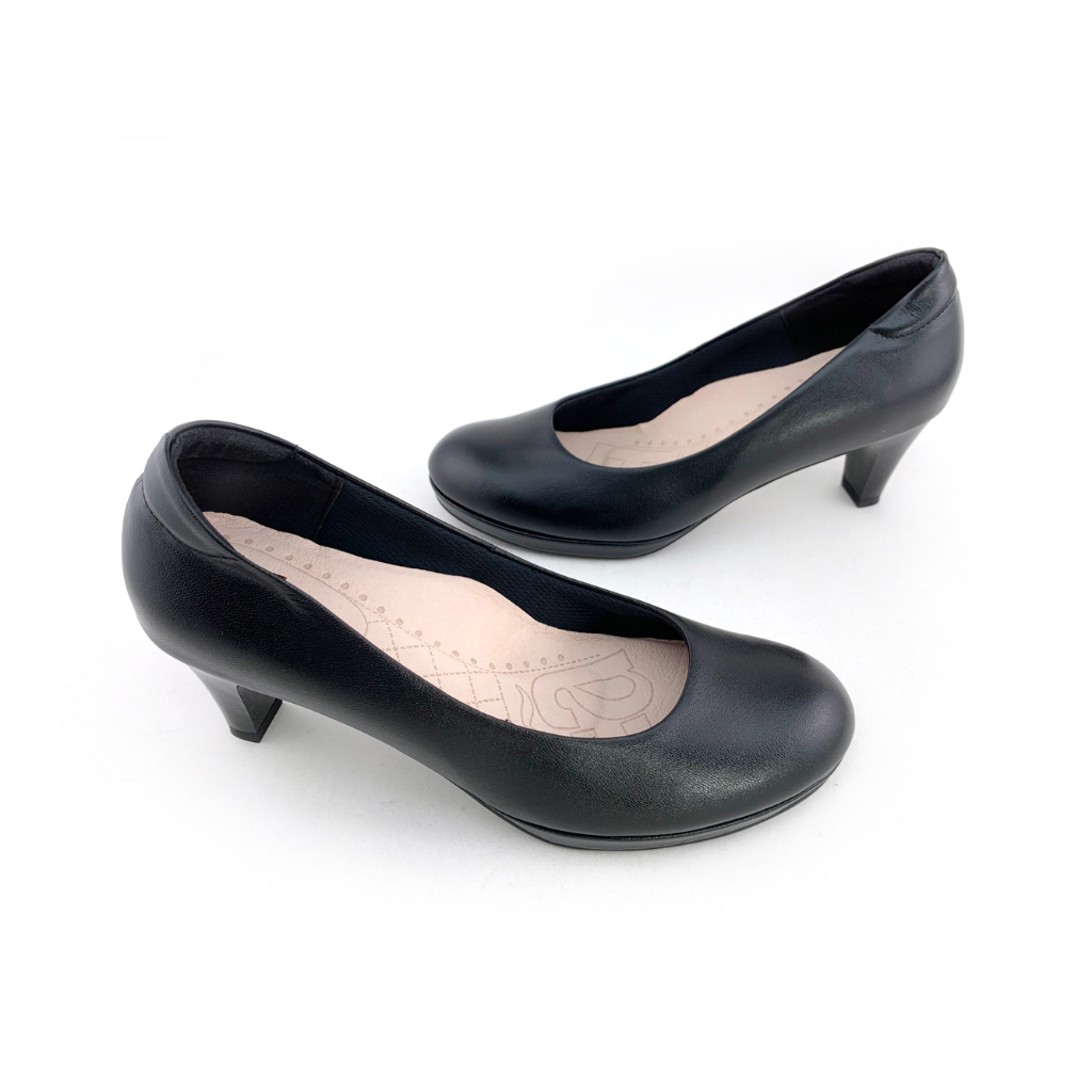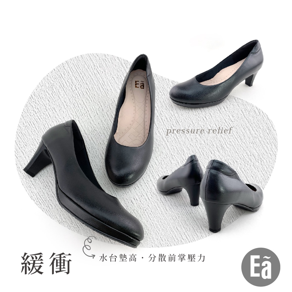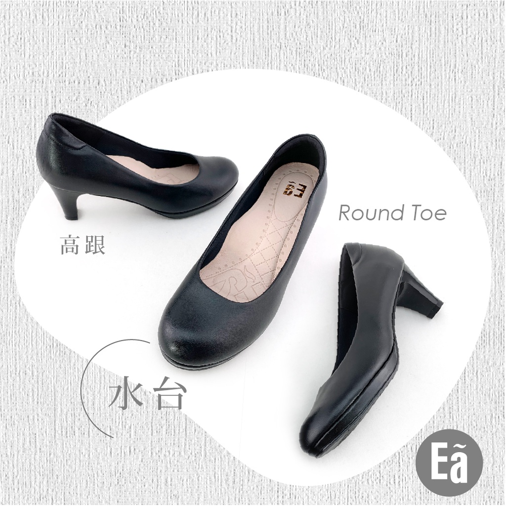 Ea專櫃真皮女鞋 零碼鞋26號 真皮圓頭素面 空姐 正裝 水台 6.5公分 制鞋 上班鞋 高跟鞋(黑)7503