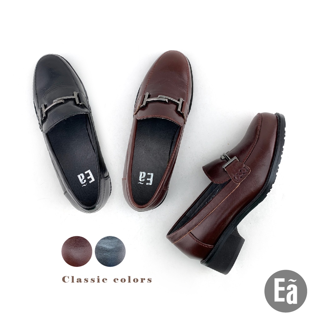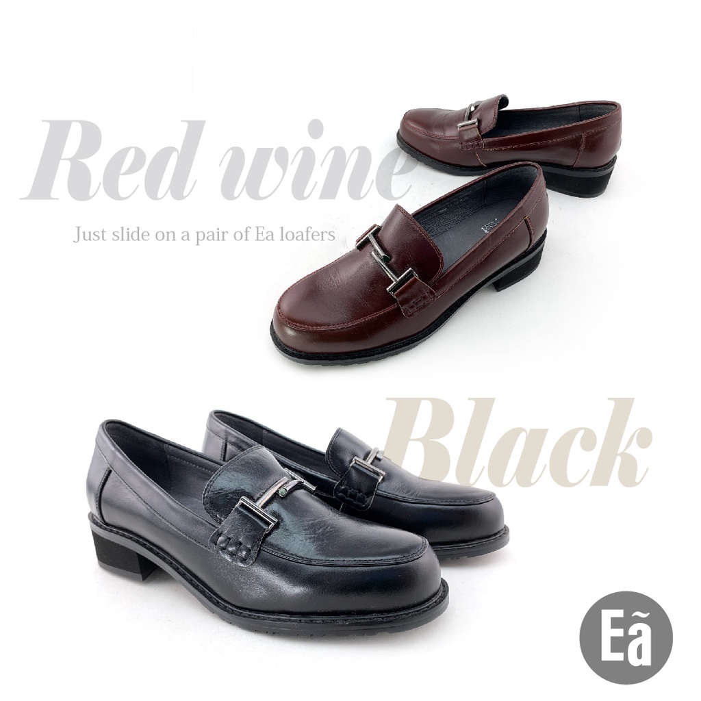 Ea專櫃真皮女鞋 真皮 英倫系 素色 深口 低跟 樂福鞋 學生鞋(暗紅/黑)8858