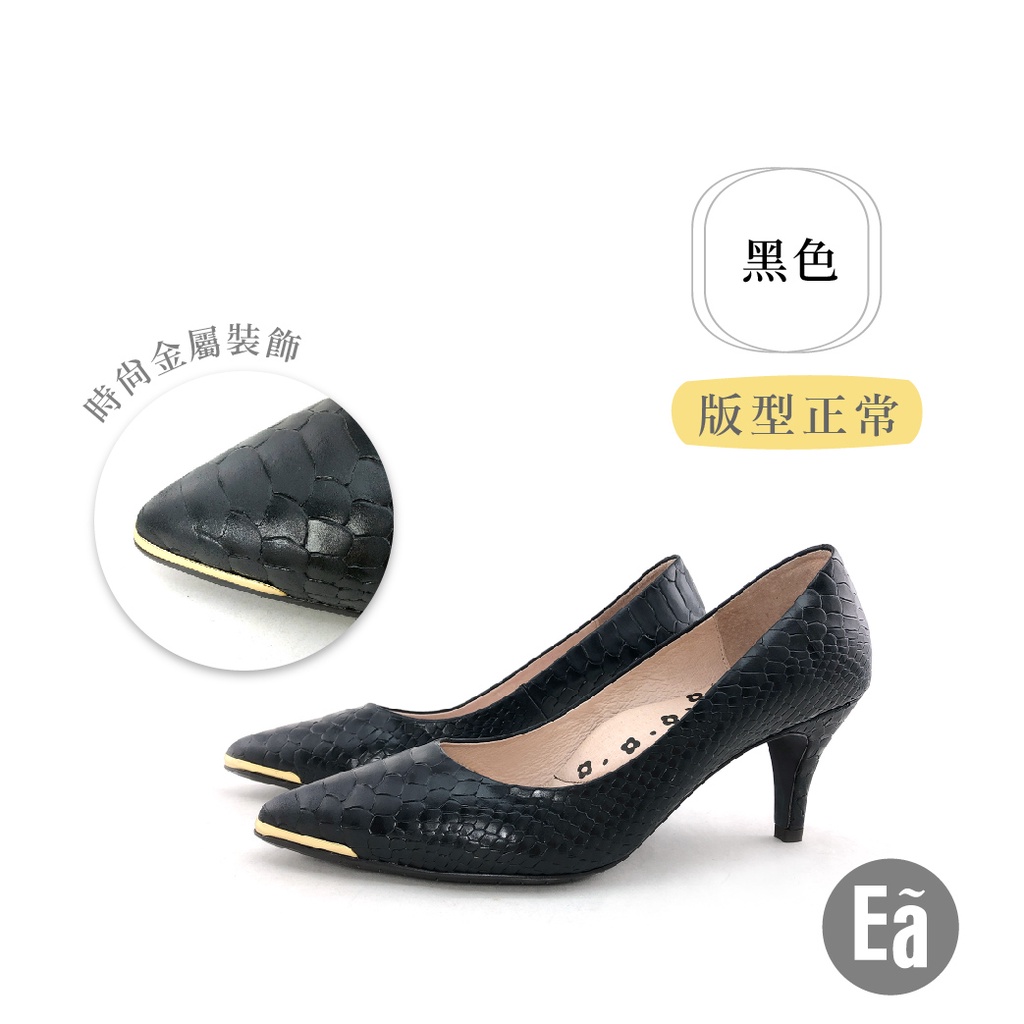 Ea專櫃真皮女鞋 零碼鞋25.5號 摩登真皮蛇紋尖頭高跟鞋 (黑色)4625
