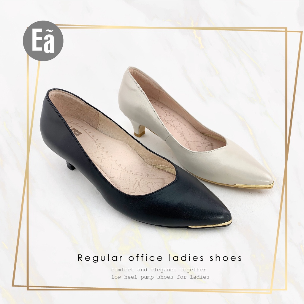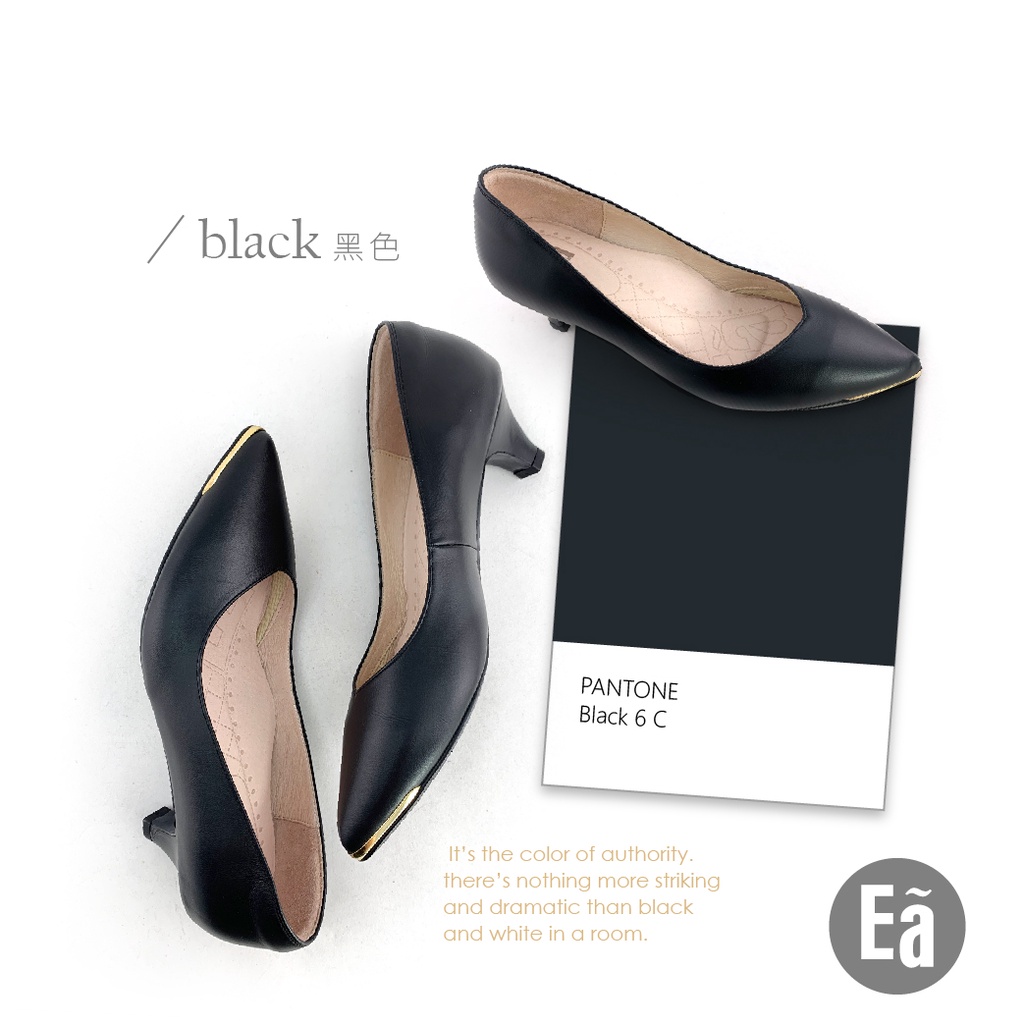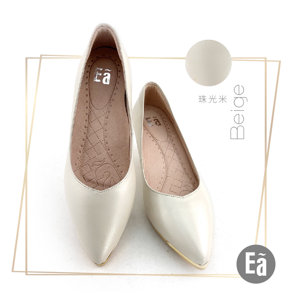 Ea專櫃真皮女鞋 真皮珠光素色尖頭金邊3公分低跟淺口正裝鞋 上班鞋(珠光白/黑)7327