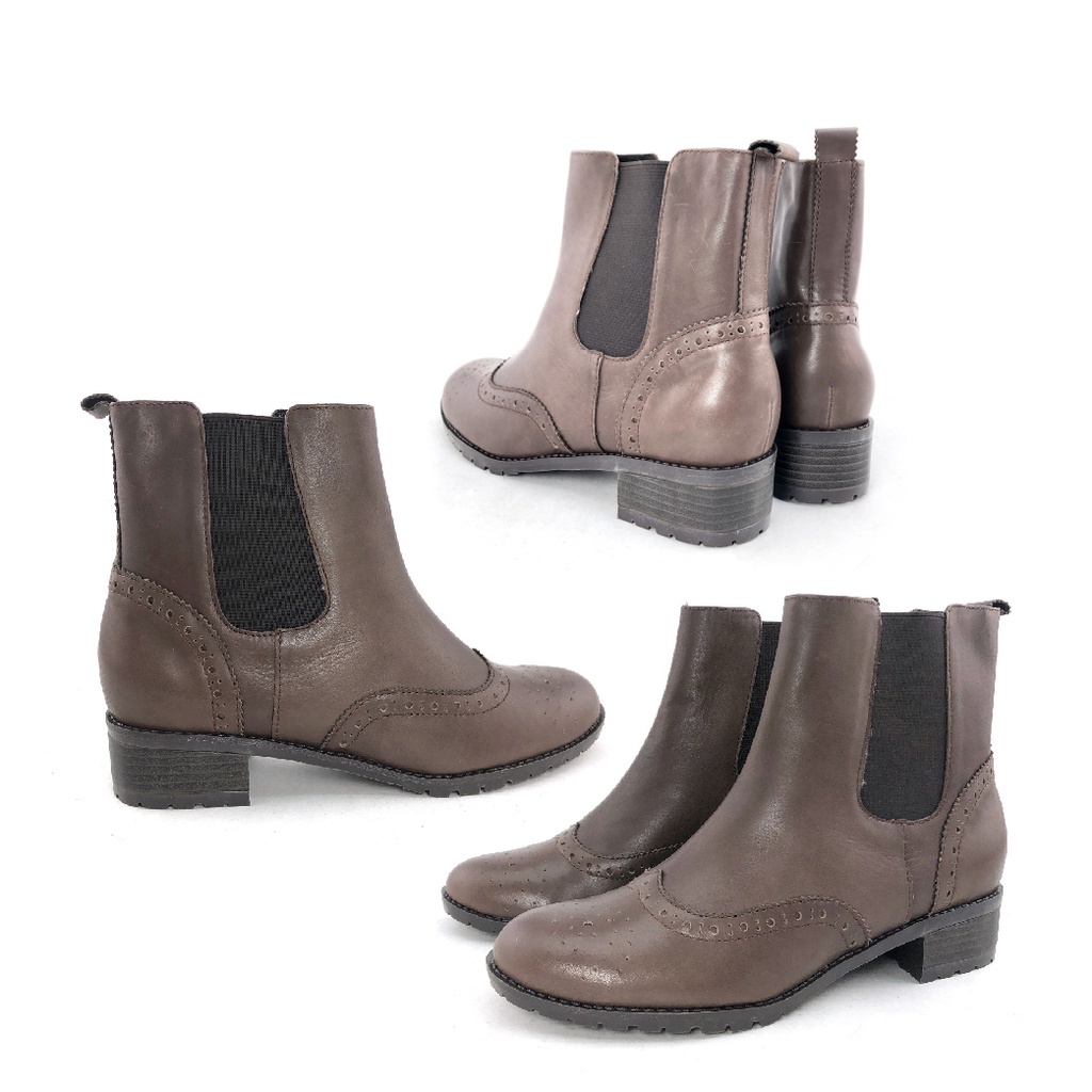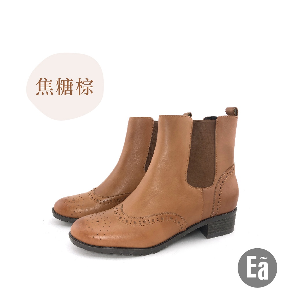 Ea專櫃真皮女鞋 經典復古英倫雕花 切爾西低跟短靴 (焦糖棕/可可色)5704