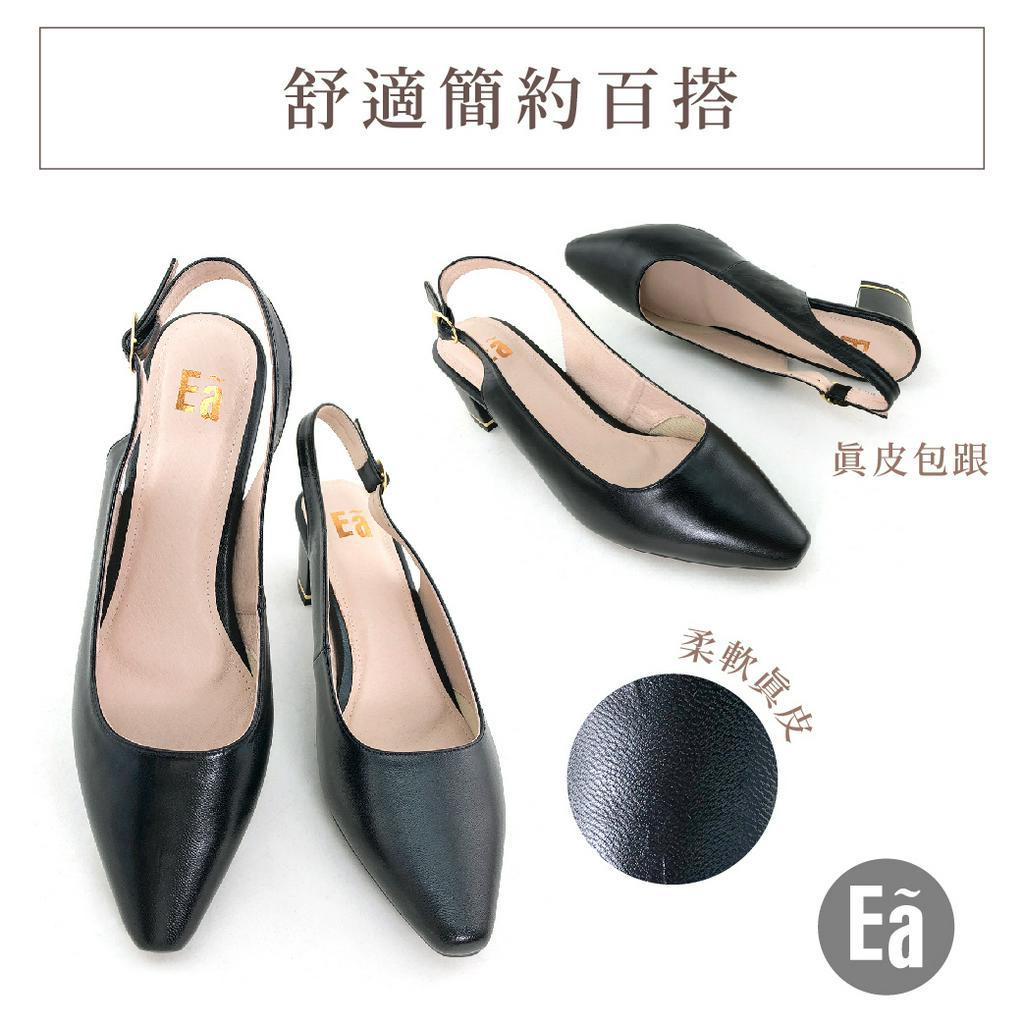 Ea專櫃真皮女鞋 午茶時光 真皮素面方頭前包後空 粗跟中跟涼鞋 (珊瑚沙色/粉膚/靚黑)0416