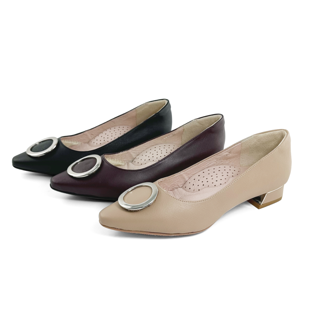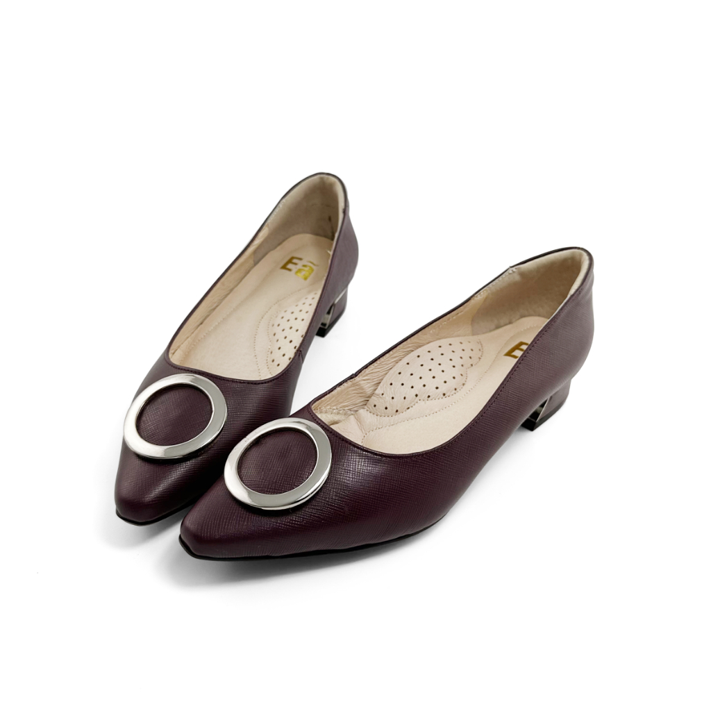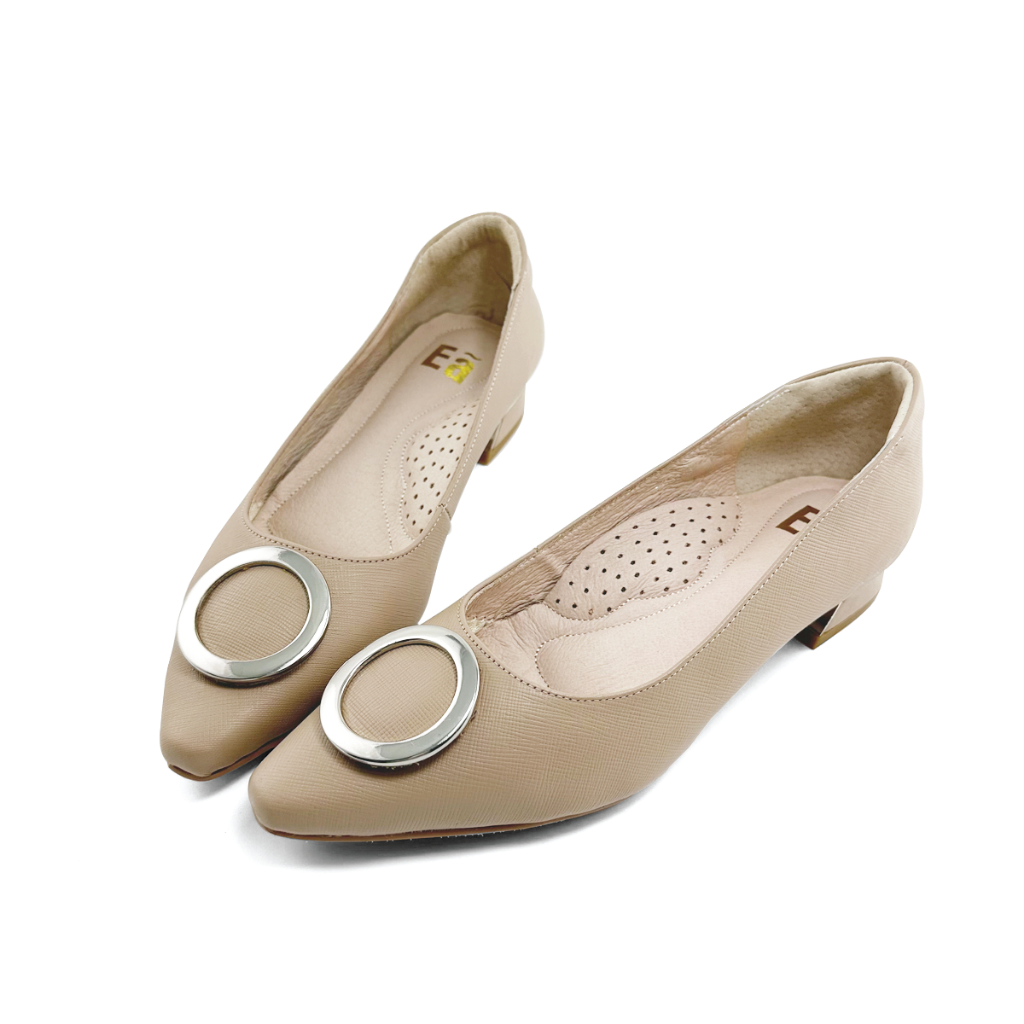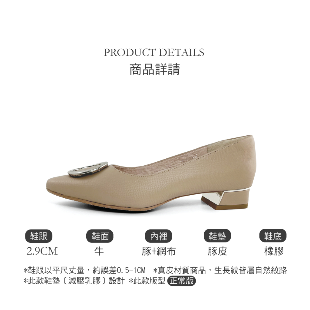 Ea專櫃真皮女鞋 真皮壓紋圓釦小方頭低跟鞋 0631