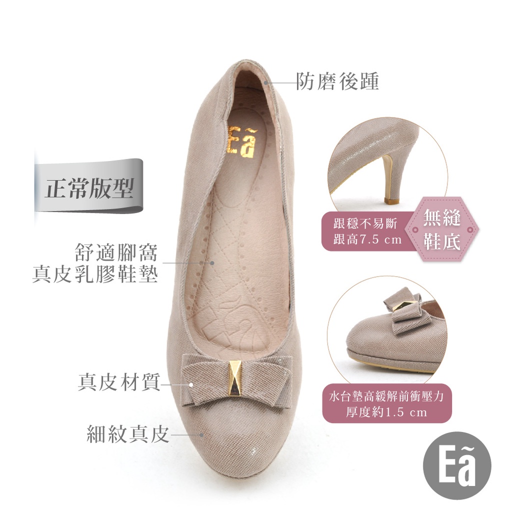 Ea專櫃真皮女鞋 真皮細紋蝴蝶結小圓頭水台高跟鞋 上班鞋(奶茶)8606