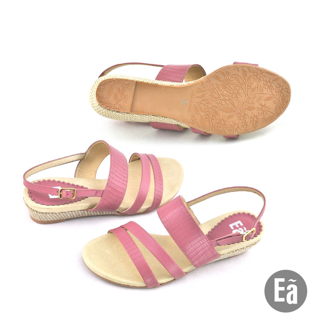 Ea專櫃真皮女鞋 壓紋寬帶後拉麻繩漁夫鞋款 楔型鞋 涼鞋(粉紅)6344