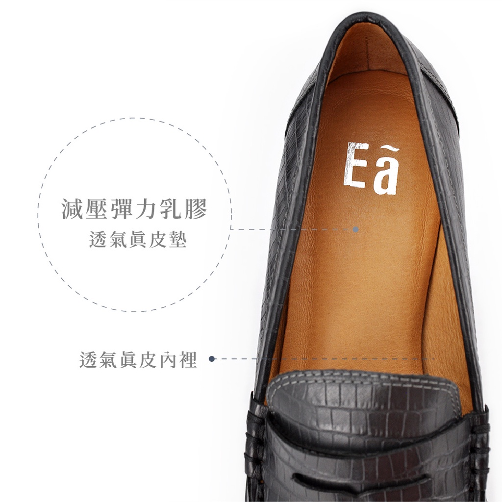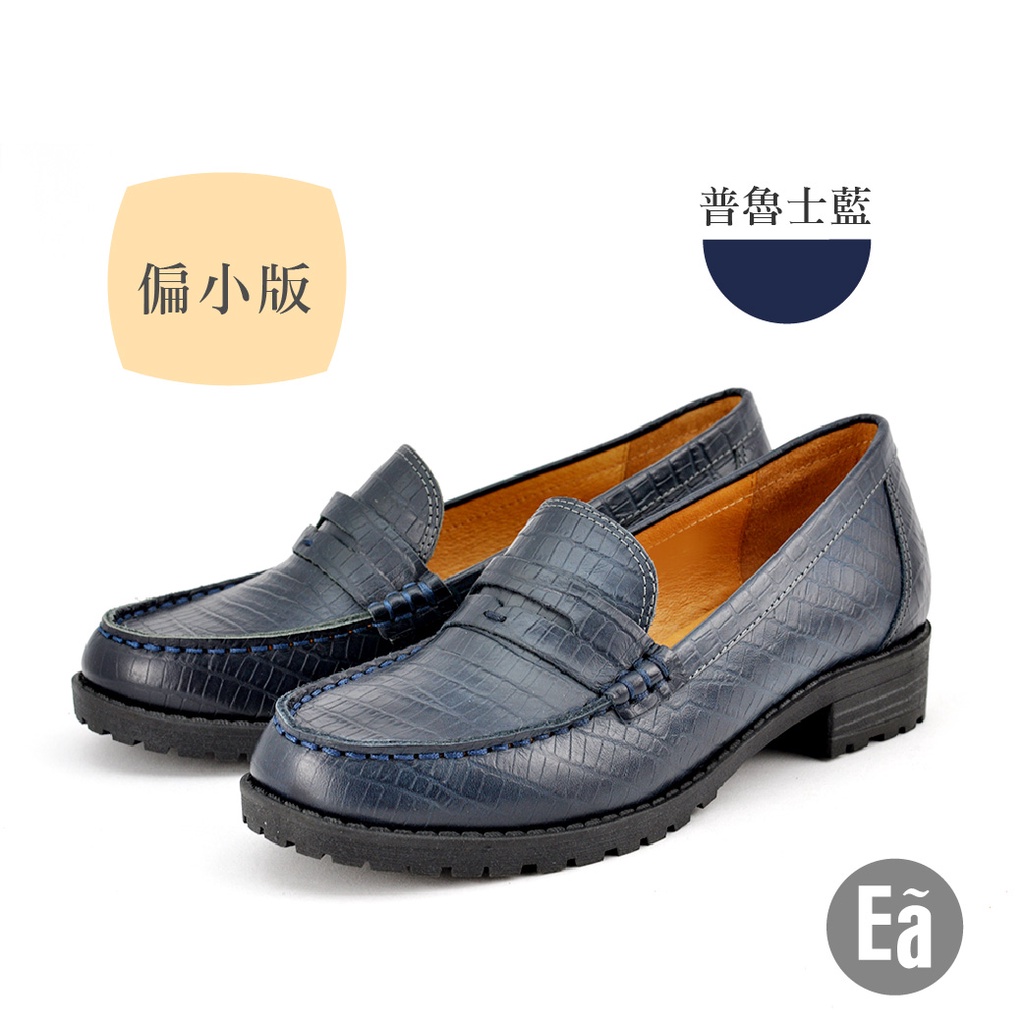 Ea專櫃真皮女鞋 真皮鱷魚壓紋復古平底樂福鞋 牛津鞋(普魯士藍/酒紅)6667