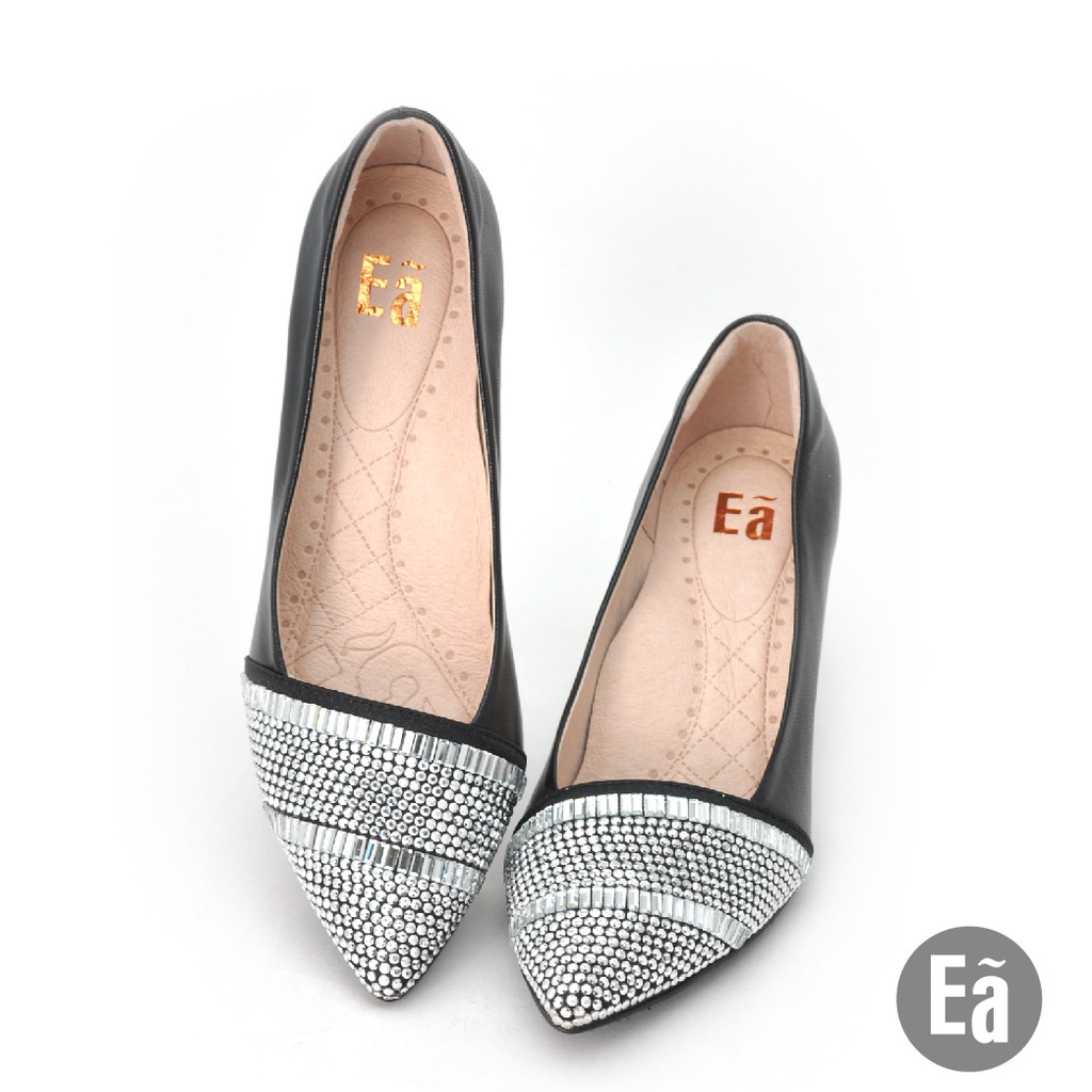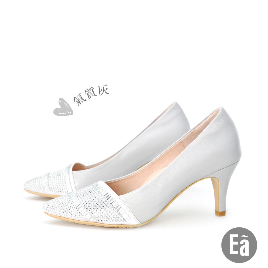 Ea專櫃女鞋 星光閃閃真皮貼鑽高跟鞋(淺卡其/氣質灰/皮革黑)6327