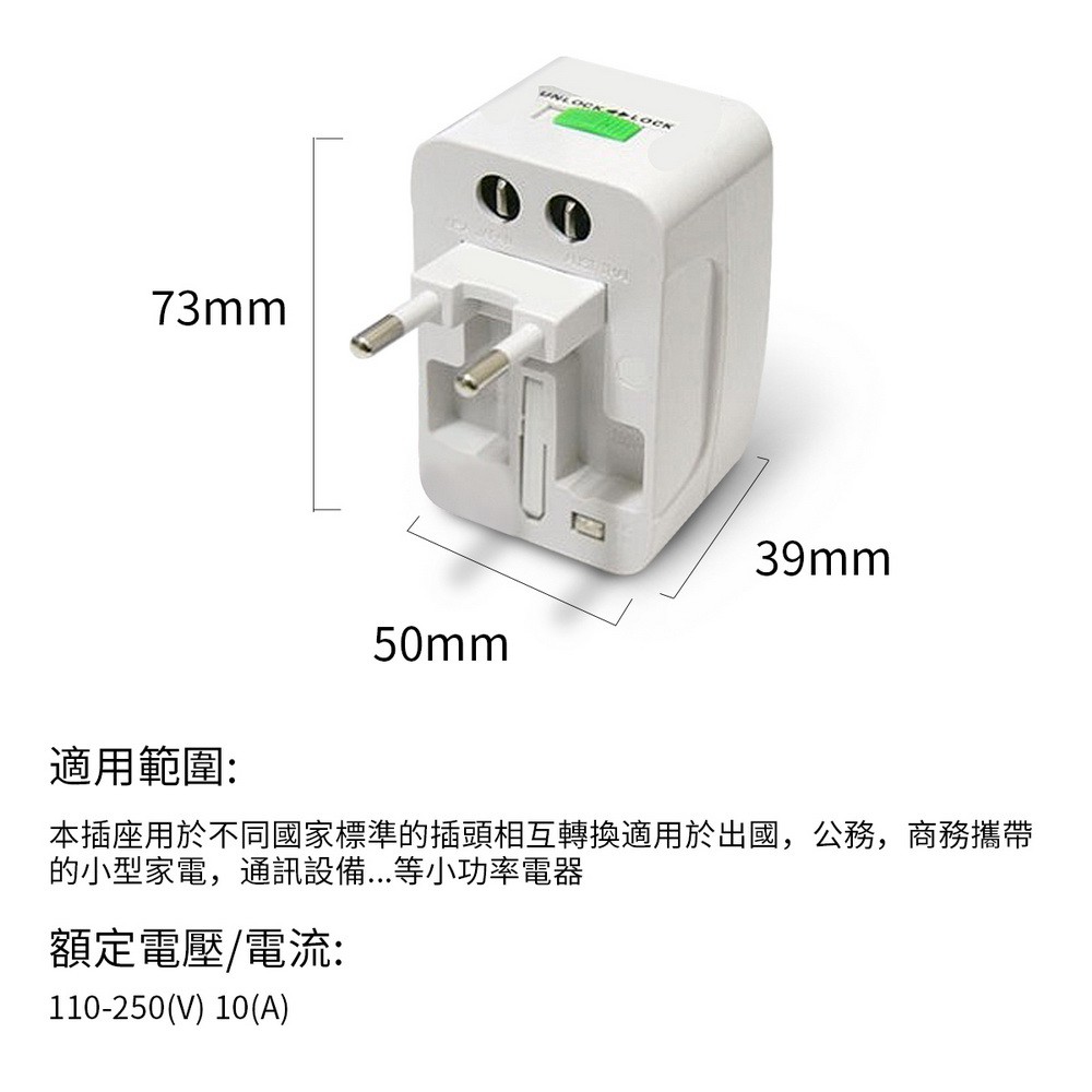 [ZIYA] 多國充電器轉接頭/國際充電器插座頭 (4in1 美規US+歐規EU+澳規AU+英規UK)