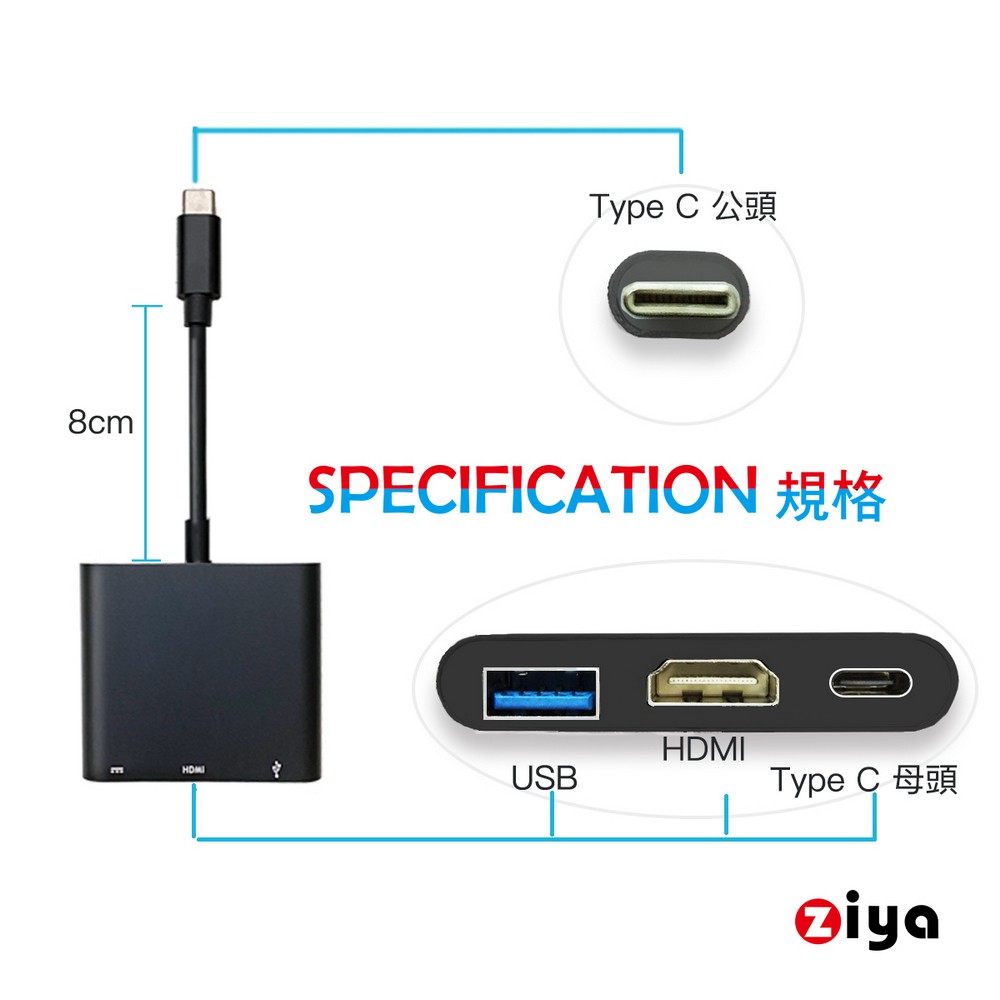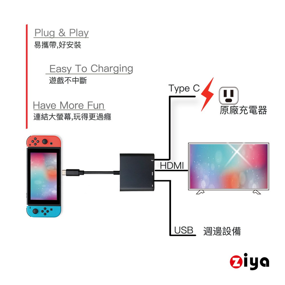 [ZIYA] NINTENDO 任天堂 SWITCH HDMI 視訊轉接線 4K 精緻流暢款 暗黑色