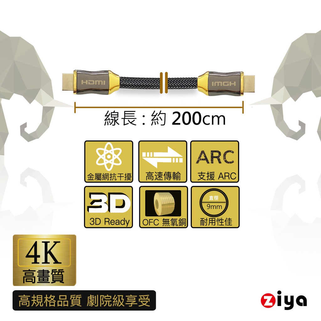 [ZIYA] PS / XBOX / Switch 遊戲主機專用 4K HDMI視訊傳輸線 奢華劇院款 200 cm