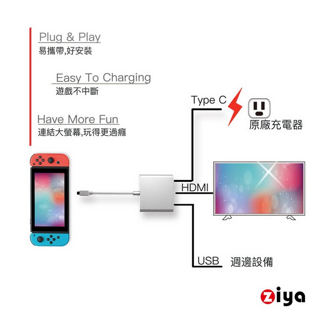 [ZIYA] NINTENDO 任天堂 SWITCH HDMI 視訊轉接線 4K 精緻流暢款