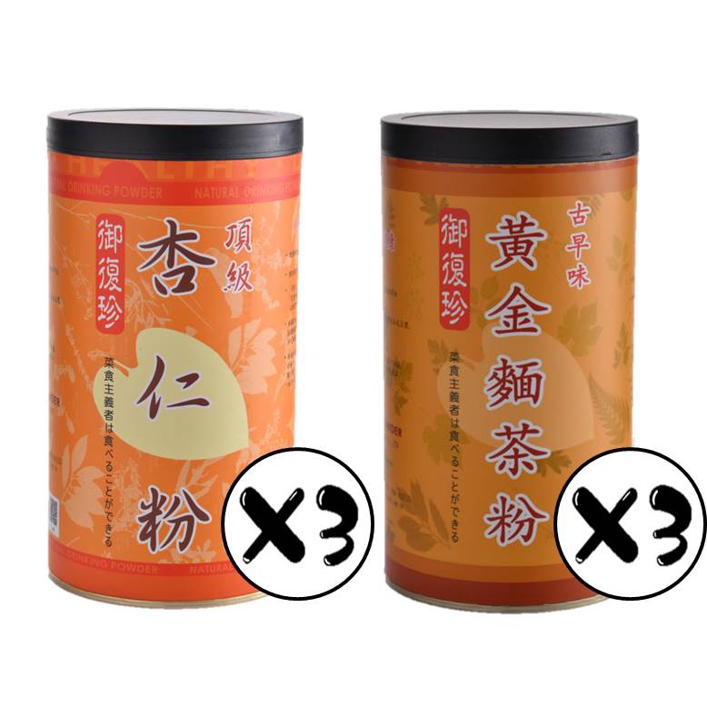 【御復珍】頂級杏仁*3+古早味黃金麵茶*3 甜杏仁 豐富蛋白質 多種維生素 粉末細緻 口感滑順 (純素食/六罐組)