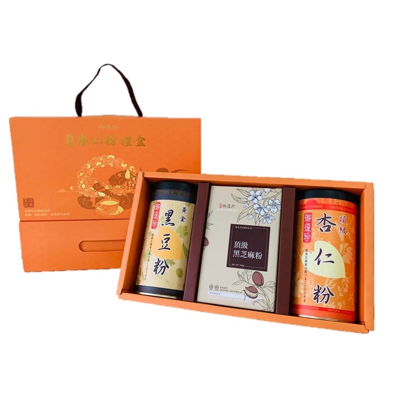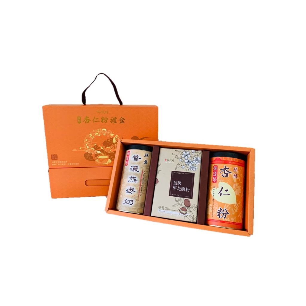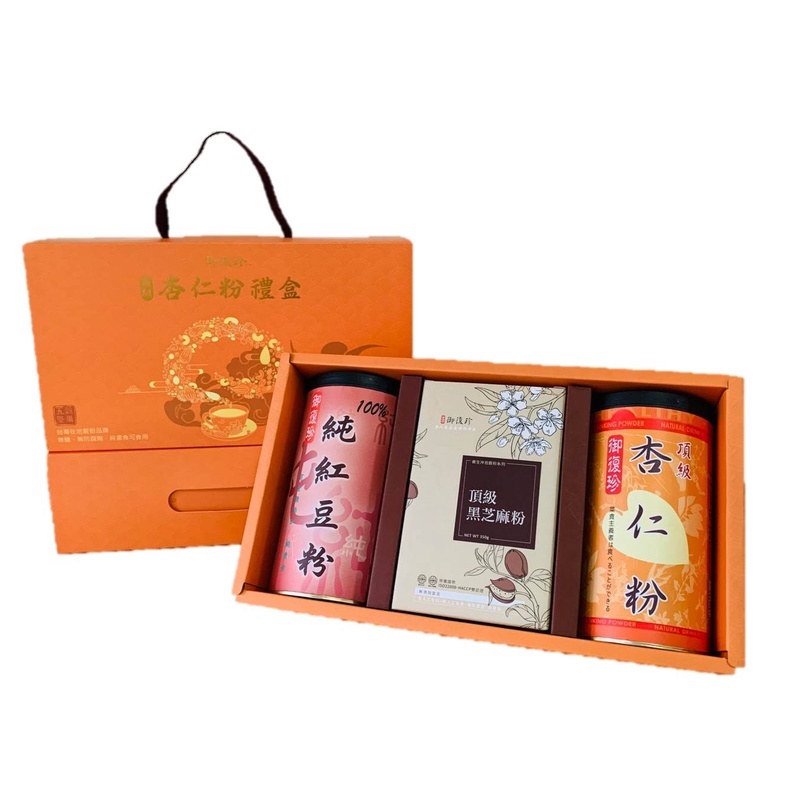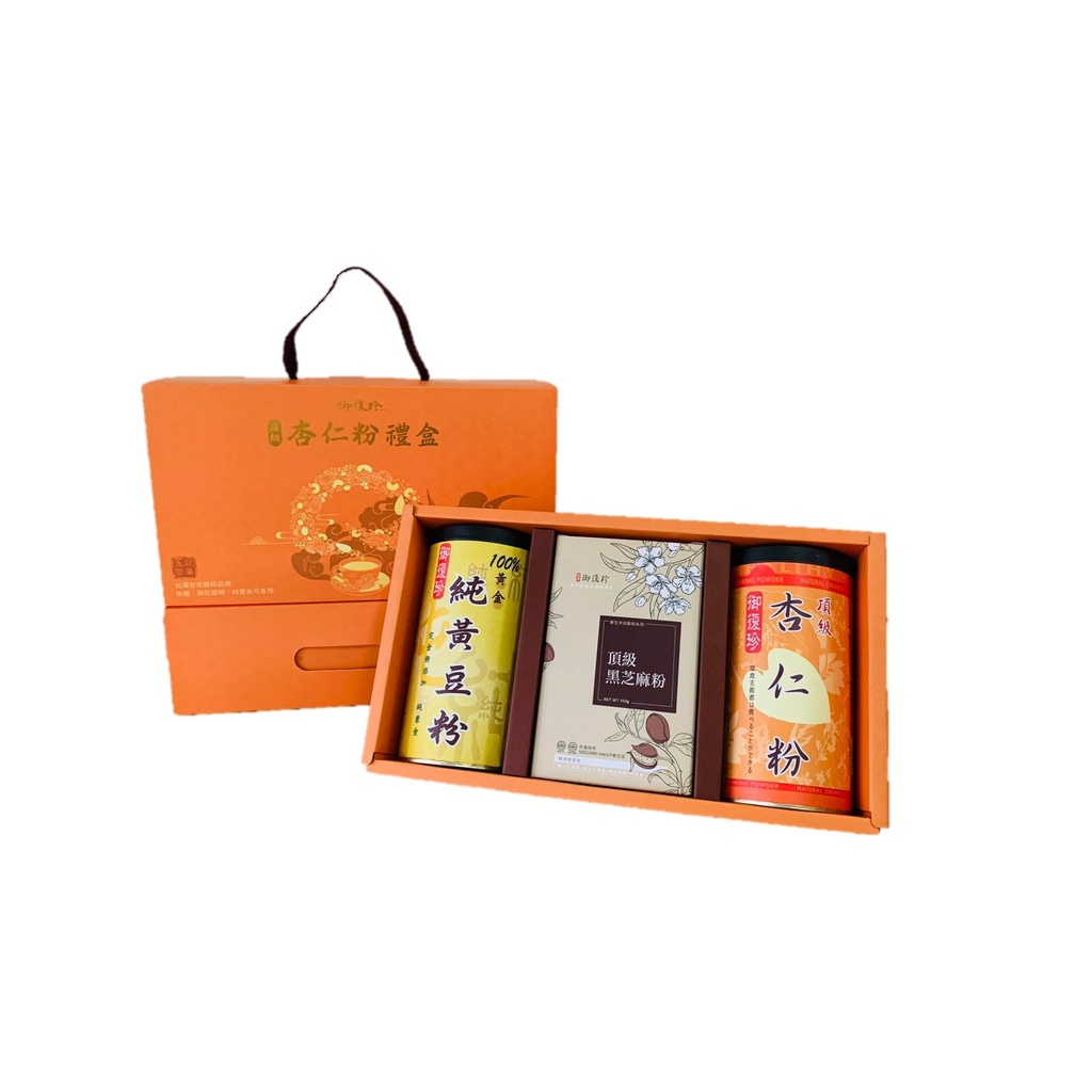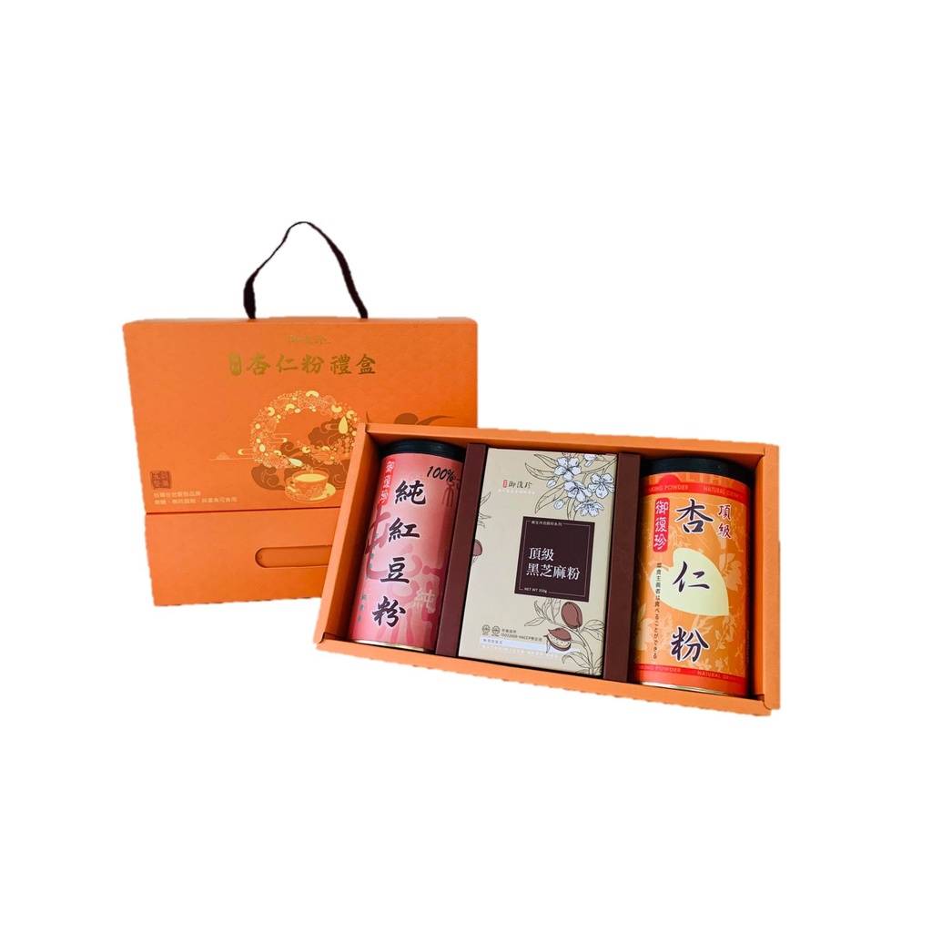 【年節禮盒】杏福禮盒組 - 頂級杏仁、黑豆粉、黃金豆漿粉、古早味麵茶粉、純紅豆粉、純黃豆粉、薏仁粉 (純素食)
