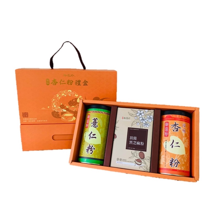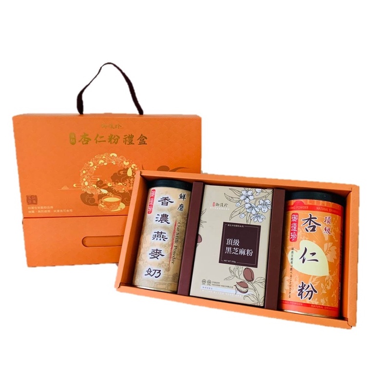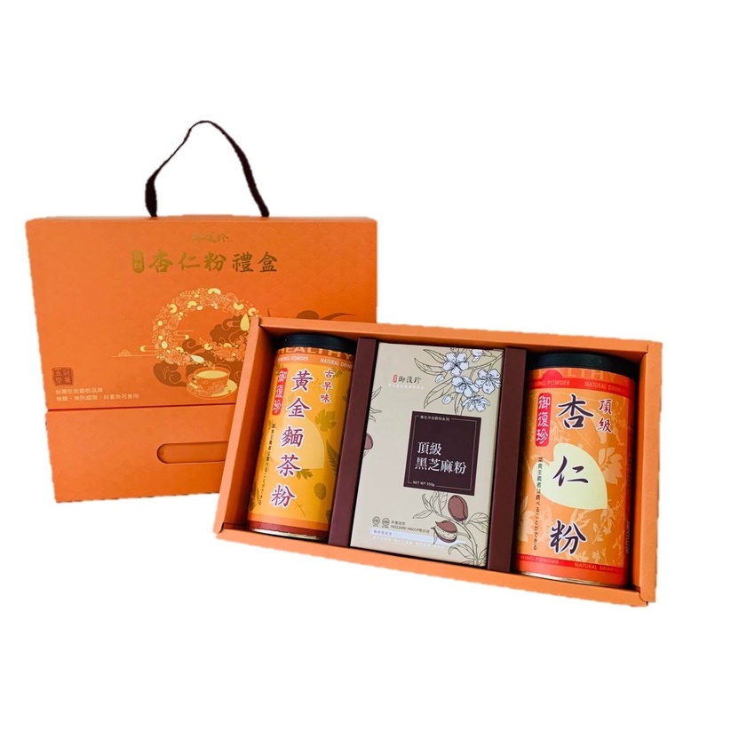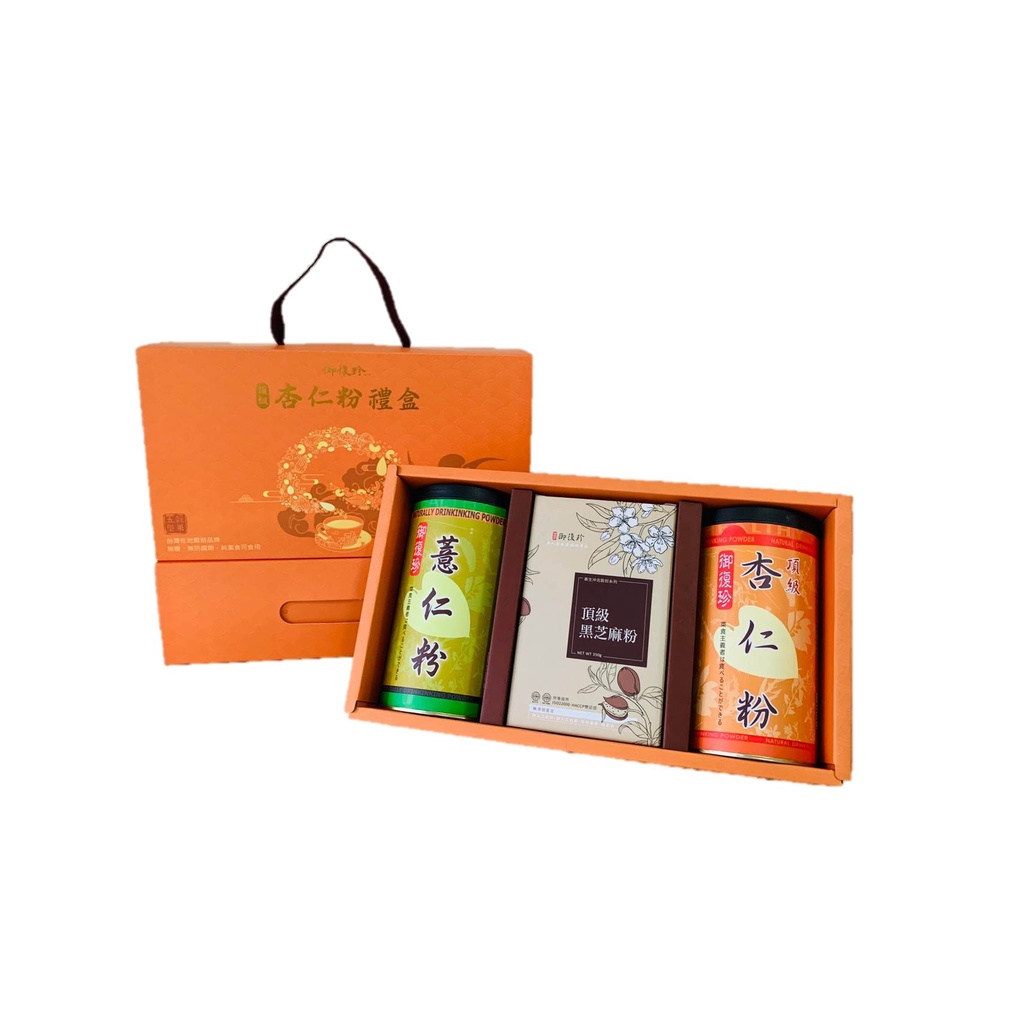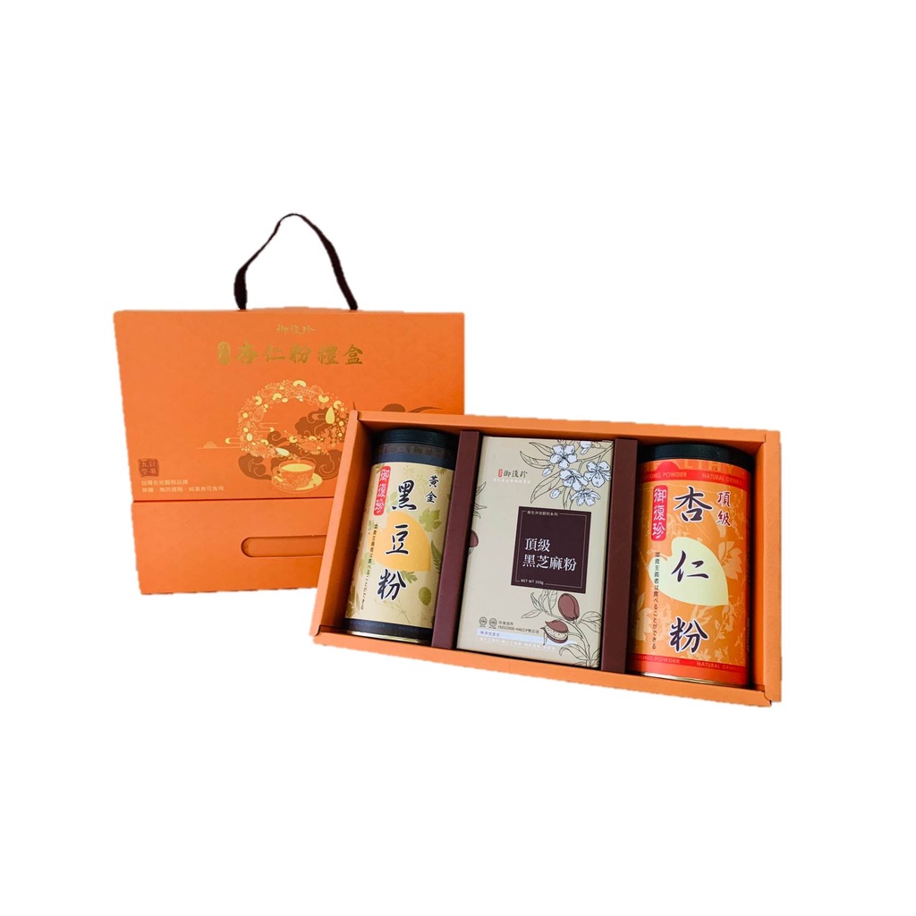 【年節禮盒】杏福禮盒組 - 頂級杏仁、黑豆粉、黃金豆漿粉、古早味麵茶粉、純紅豆粉、純黃豆粉、薏仁粉 (純素食)