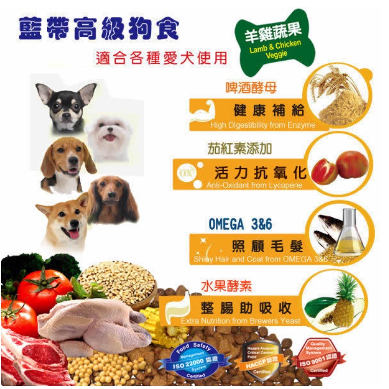 藍帶高級狗食 狗飼料-成犬 羊雞蔬果19.8kg 狗飼料 捐贈首選 流浪狗