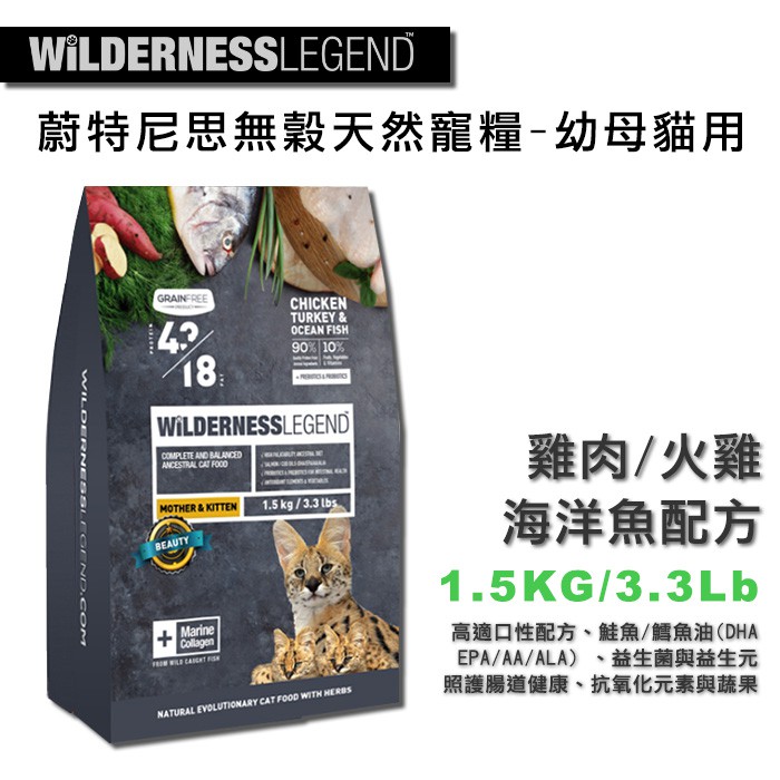 蔚特尼思天然無穀貓糧 貓飼料 凍乾飼料 -幼母貓(雞肉+火雞+海洋魚) 1.5KG -自然防護力 高適口