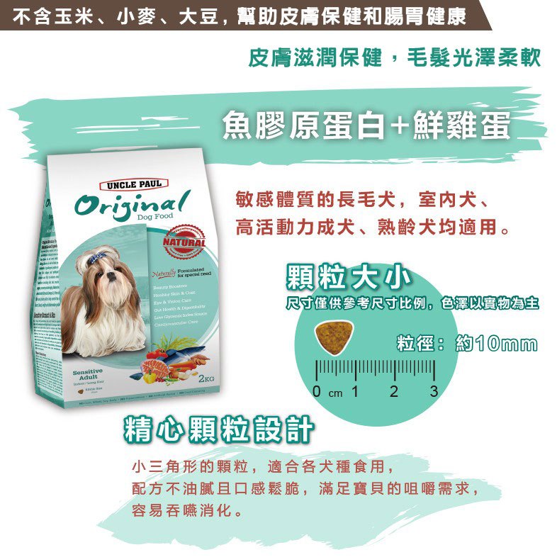 保羅叔叔田園生機狗糧 狗飼料 -低敏成犬 室內犬/長毛犬2kg - 全齡犬 小型犬 貴賓 長毛犬