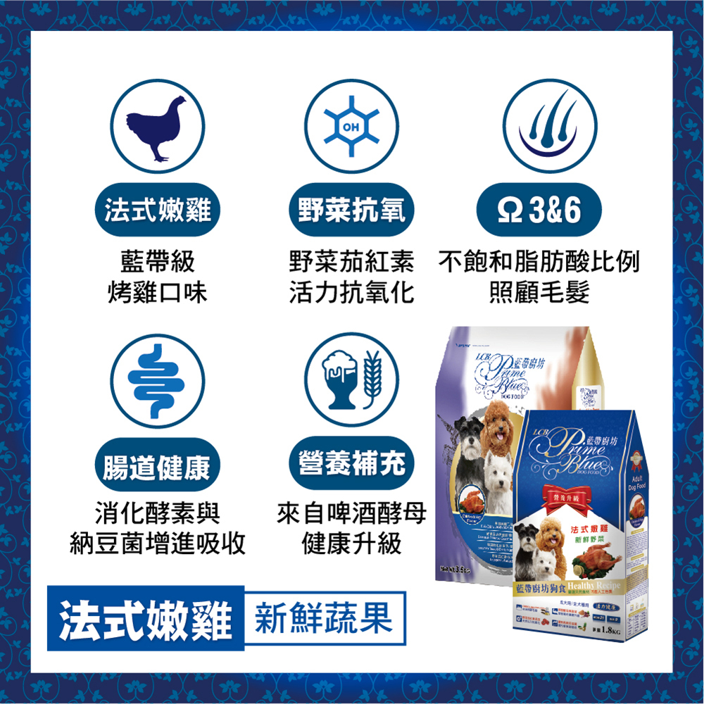 LCB藍帶廚坊經典狗糧 天然犬糧 狗飼料 - 雞肉米食1.8kg 全犬 成犬用