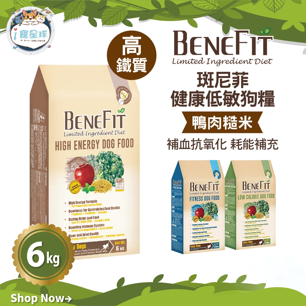 【斑尼菲Benefit L.I.D.】低敏配方狗飼料 - 高能犬 鴨肉糙米6kg - 全齡犬 幼犬 成犬