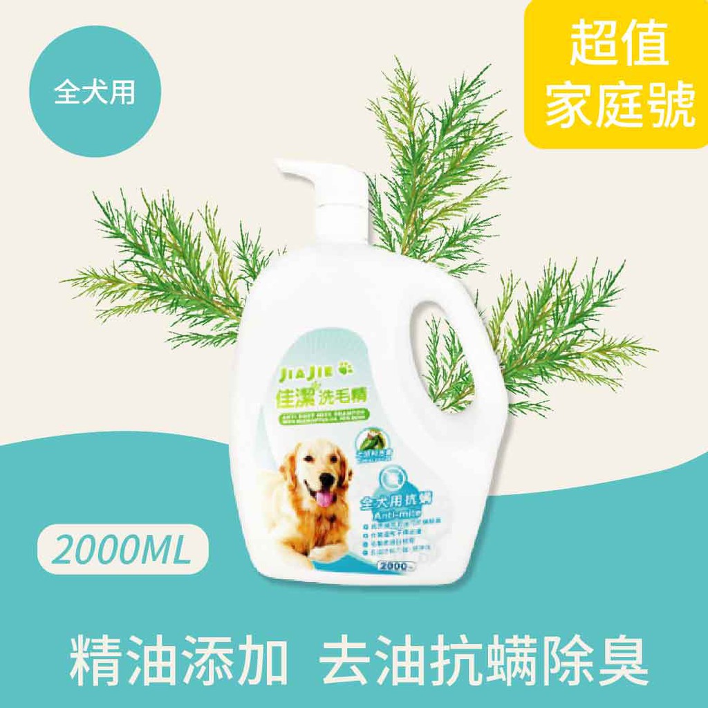 【短效優惠出清】佳潔洗毛精 全犬用 毛起來洗 - 除臭 抗螨 - 茶樹 尤加利 台灣製造 2000ml