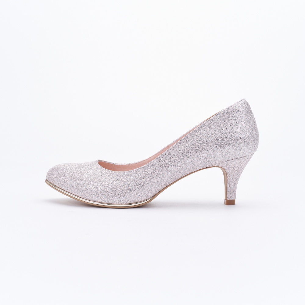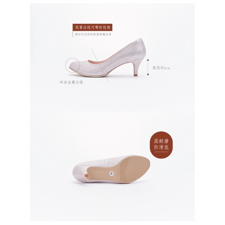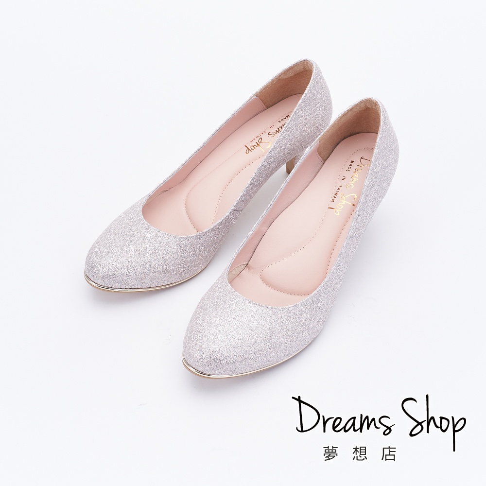 DREAMS SHOP MIT真皮減壓金屬沿條菱格紋氣墊中跟婚鞋6cm 粉色【HC10898-34】大尺碼女鞋37-44