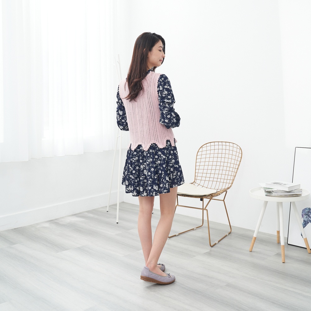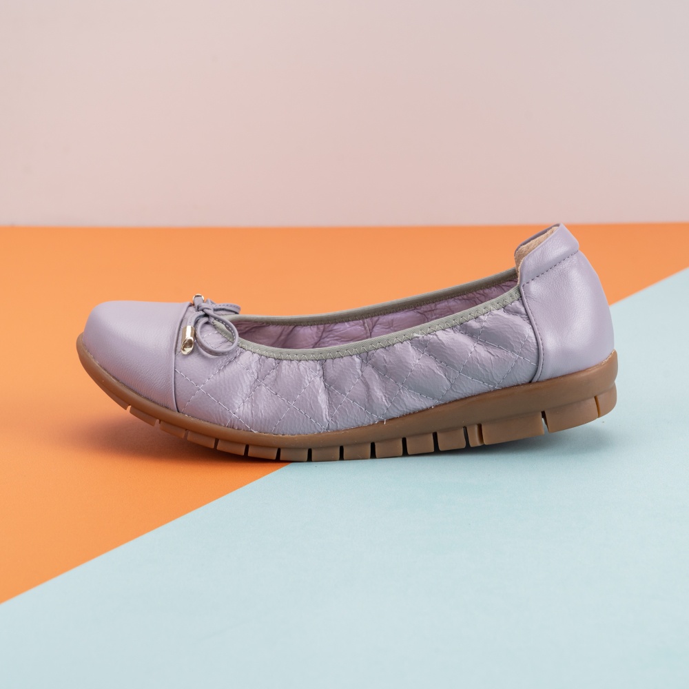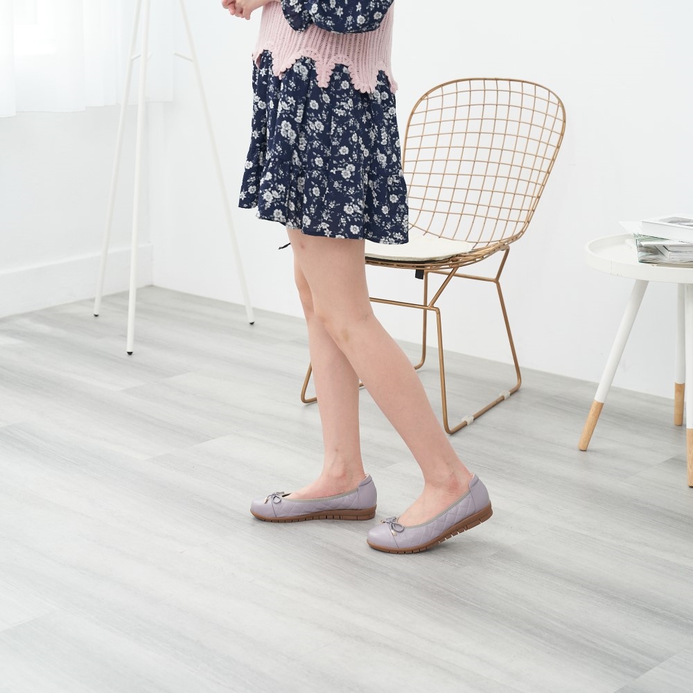 DREAMS SHOP 寬楦氣墊_MIT菱格紋蝴蝶結鬆緊帶娃娃鞋 芋色【PW2749】大尺碼女鞋37-45