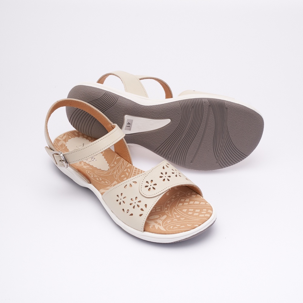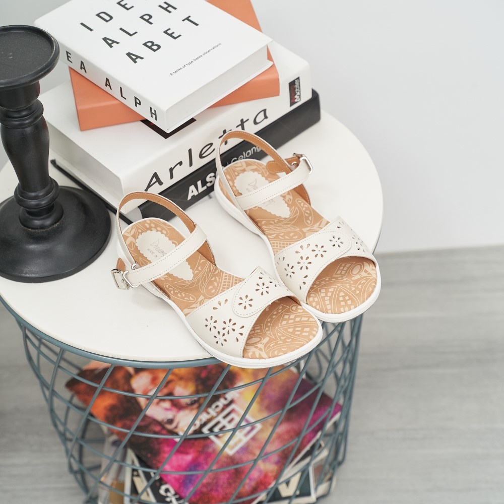 DREAMS SHOP MIT真皮減壓鏤空小花超輕平底涼鞋 米色【JD239】大尺碼女鞋37-47