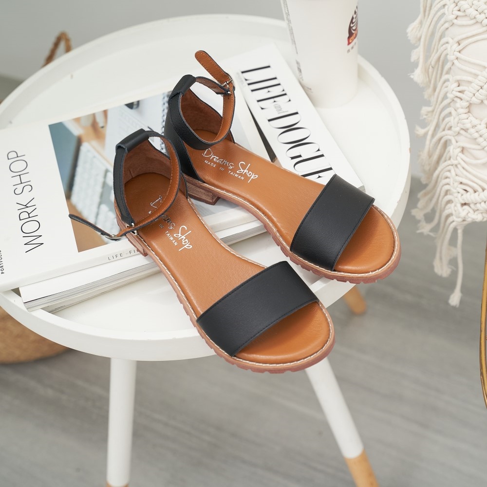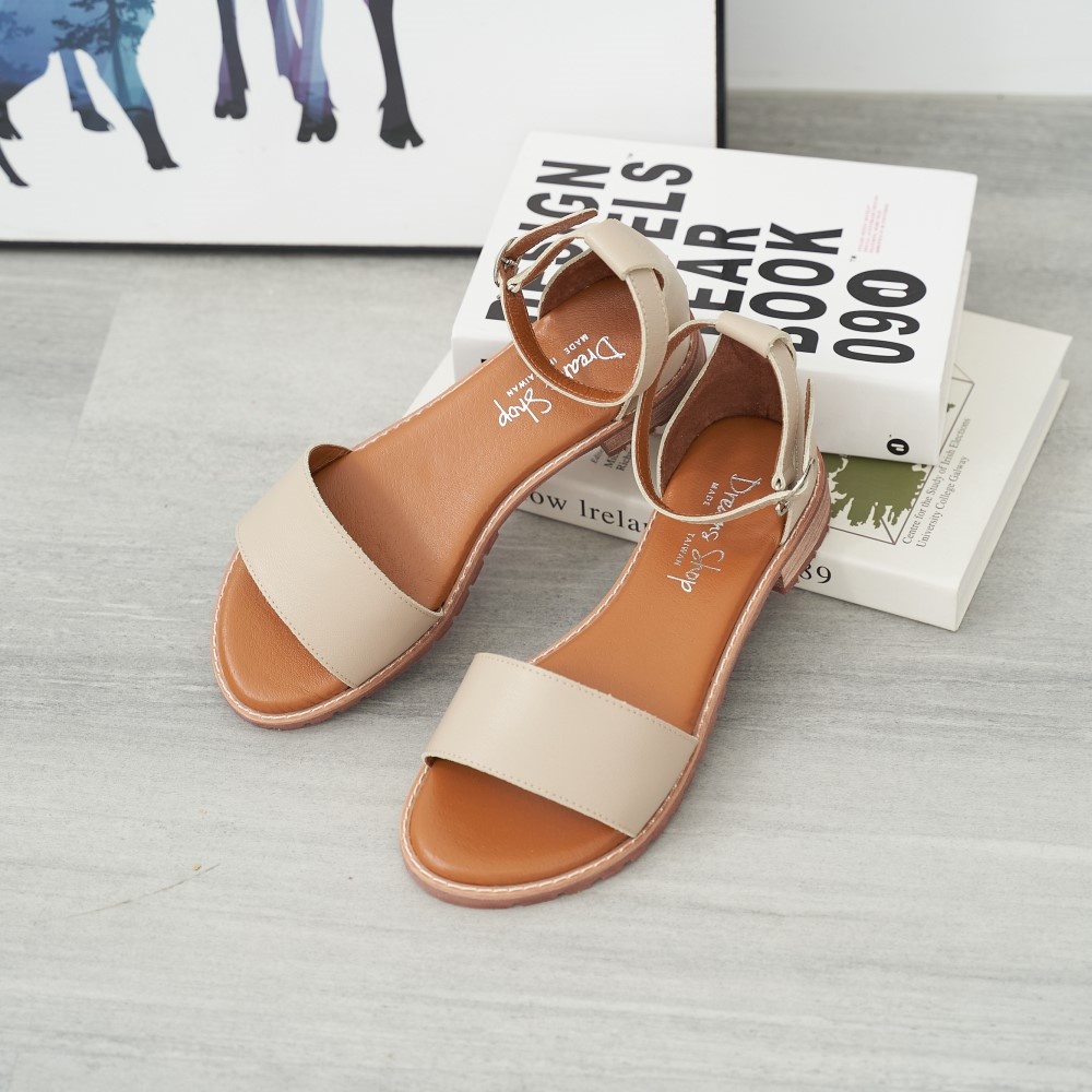 DREAMS SHOP 後包跟_MIT真皮一字帶平底涼鞋 米杏【HMB2101】大尺碼女鞋37-45