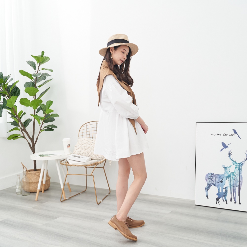 DREAMS SHOP 沙發後枕_MIT真皮素面綁帶平底德比鞋 淺棕【RL168-16】大尺碼女鞋37-45