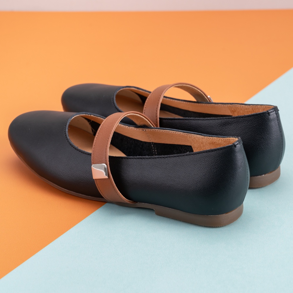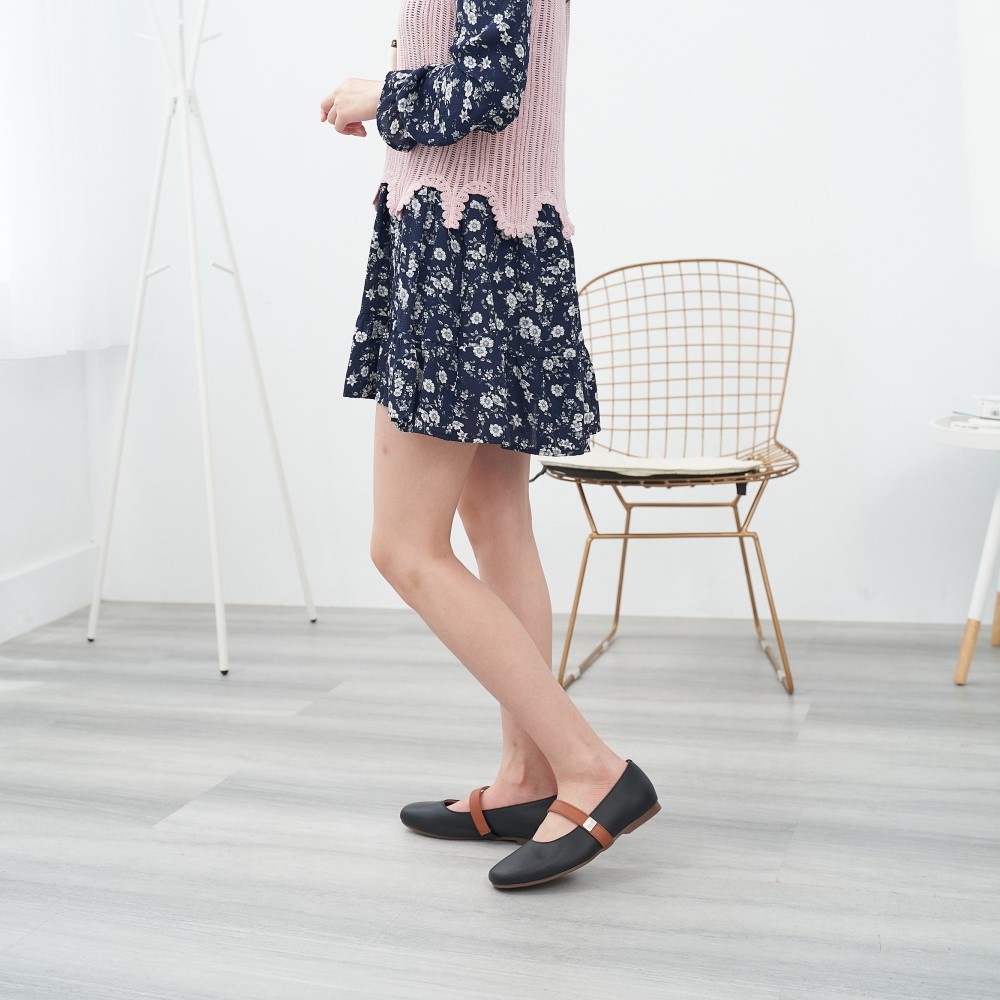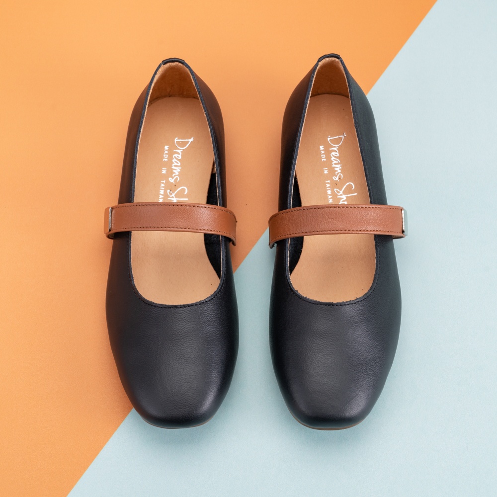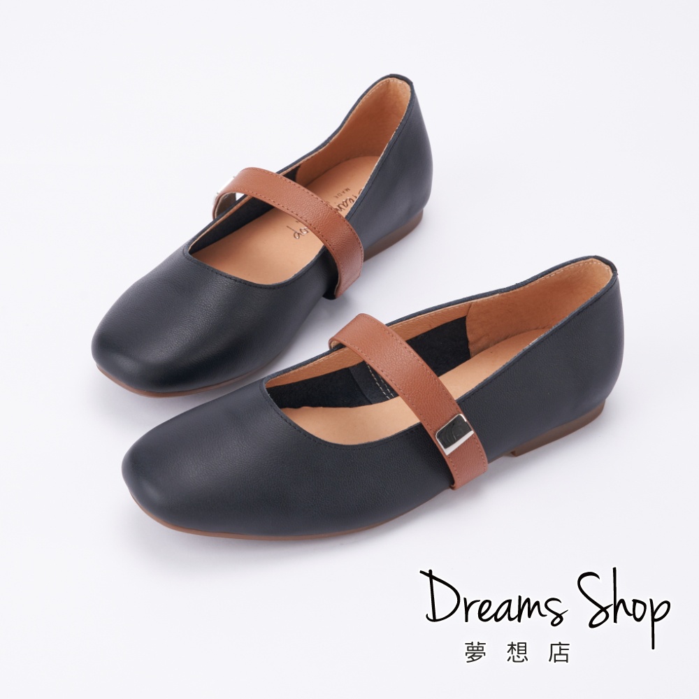 DREAMS SHOP 瑪莉珍_MIT真皮拼色平底娃娃鞋 黑色【HMBH09】大尺碼女鞋37-45