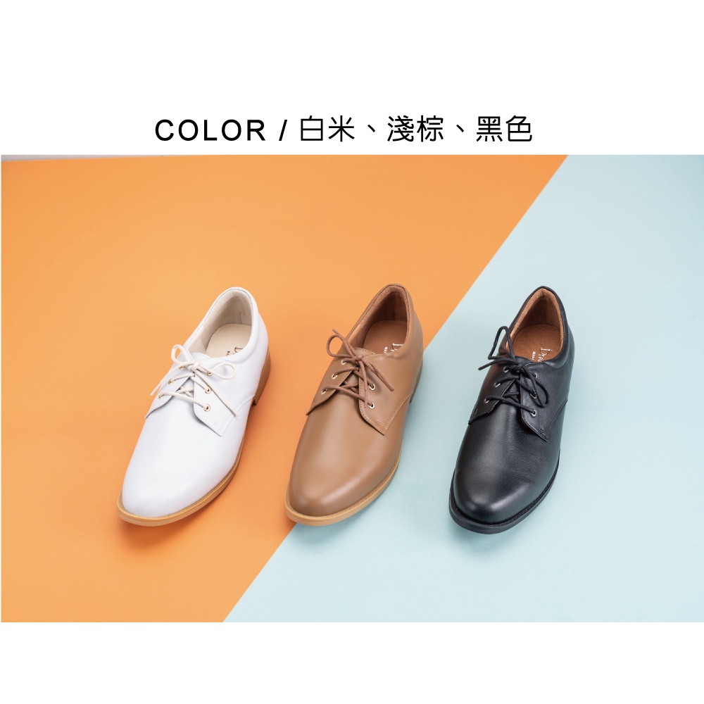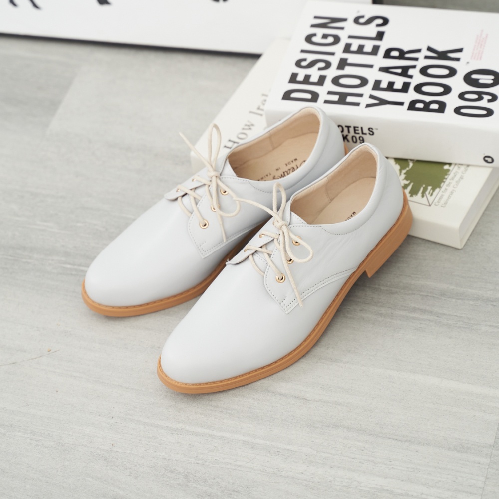 DREAMS SHOP 沙發後枕_MIT真皮素面綁帶平底德比鞋 白米【RL168-16】大尺碼女鞋37-45