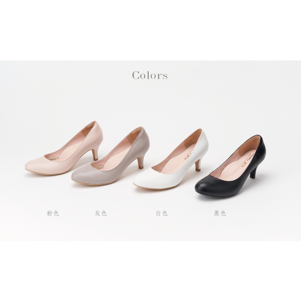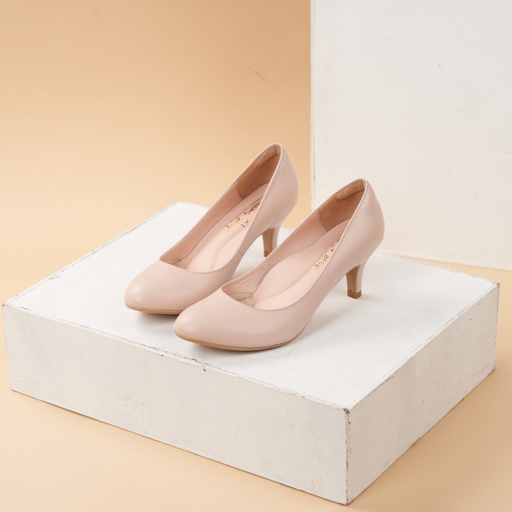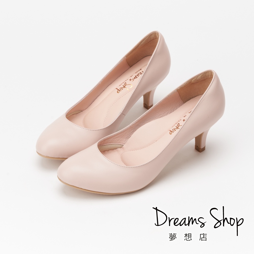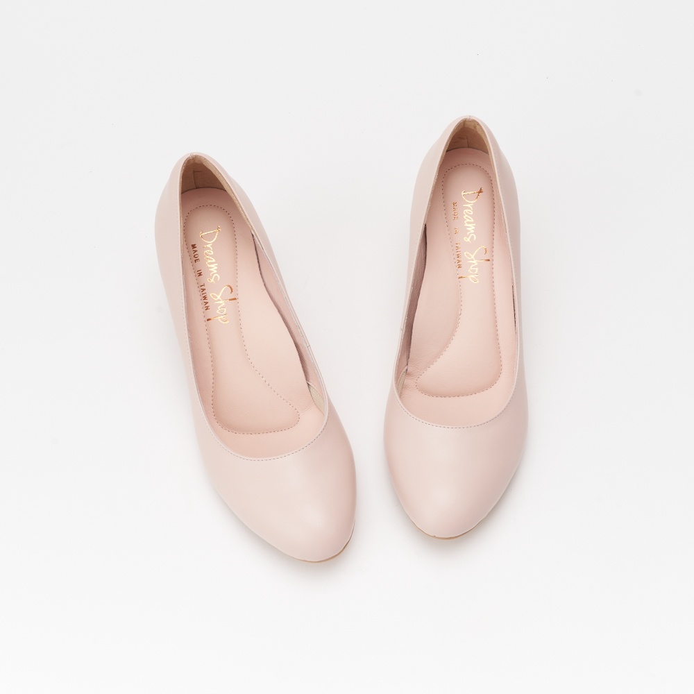 DREAMS SHOP 氣墊_MIT真皮素面圓頭高跟鞋 粉色【HC10898-09A】大尺碼女鞋37-44