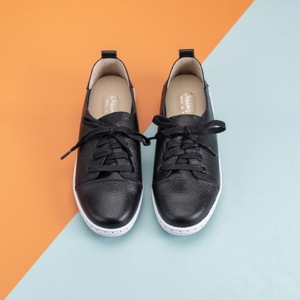 DREAMS SHOP 2Way_MIT素面真皮綁帶休閒鞋 黑豆【ZSY0676-1】