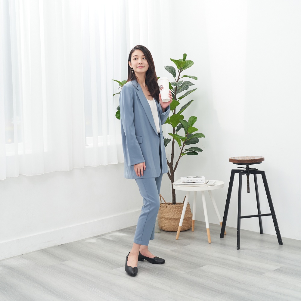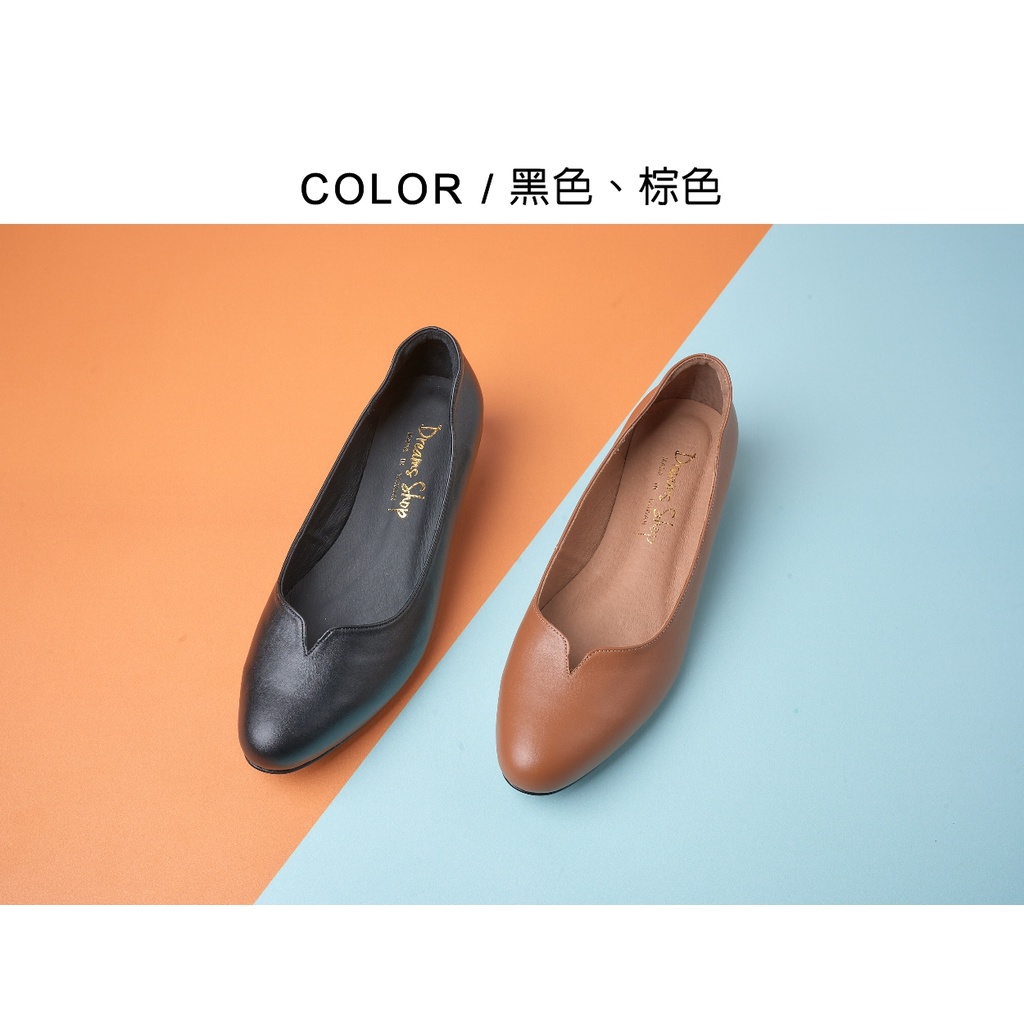 DREAMS SHOP 寬楦_MIT真皮素面V口小圓尖低跟鞋 黑色【XJ1075-6】大尺碼女鞋37-45