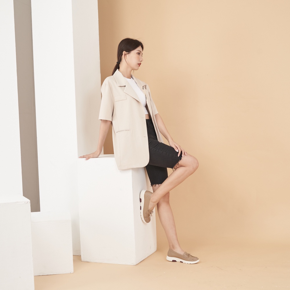 DREAMS SHOP 輕量_MIT真皮蝴蝶結莫卡辛休閒鞋 可可【JD11532】大尺碼女鞋37-46