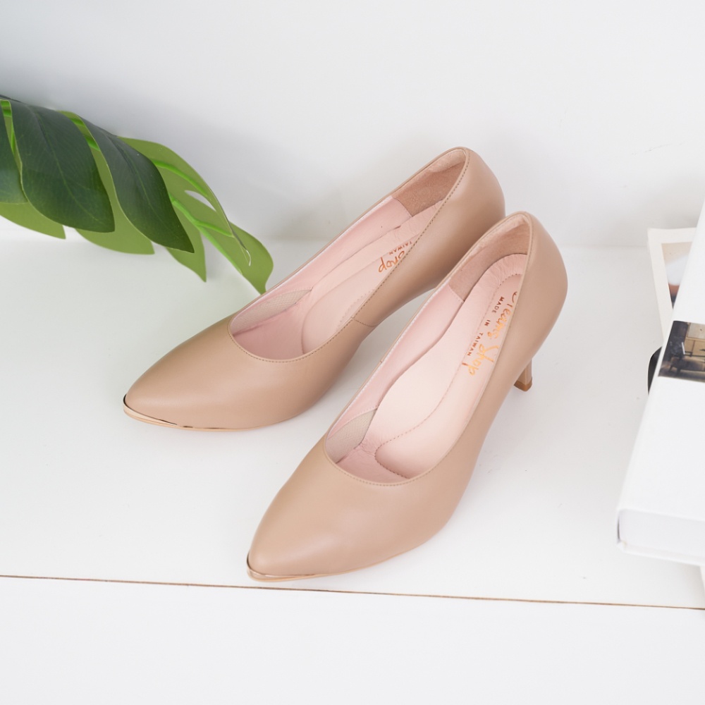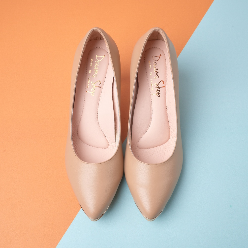 DREAMS SHOP 氣墊_MIT真皮金屬V頭尖頭高跟鞋 奶茶【HC9209-A31】大尺碼女鞋37-44