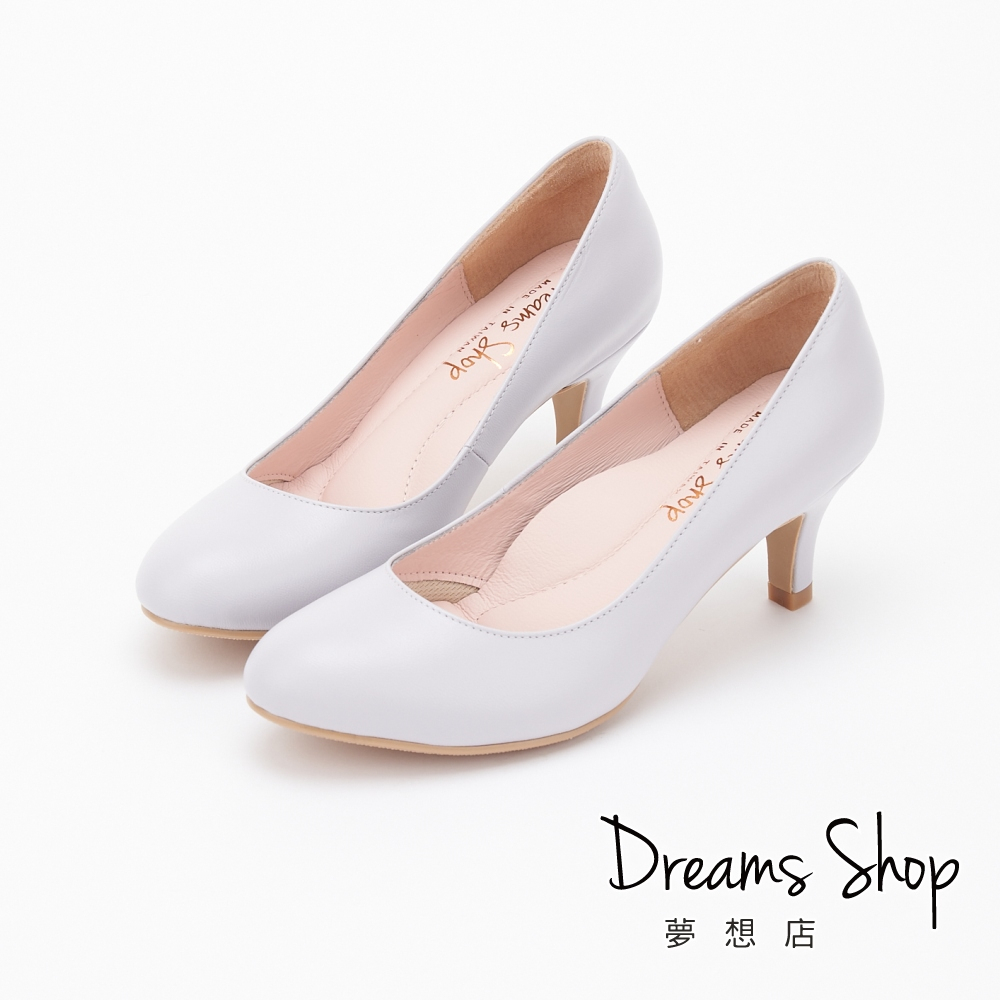 DREAMS SHOP 氣墊_MIT真皮素面圓頭高跟鞋 淺紫藤【HC10898-09A】大尺碼女鞋37-44