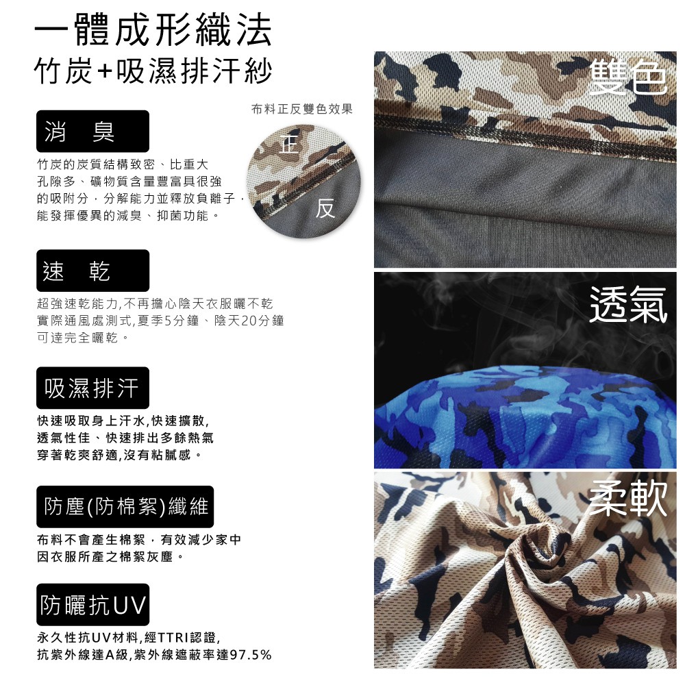 MI MI LEO 台灣製竹炭除臭迷彩機能服