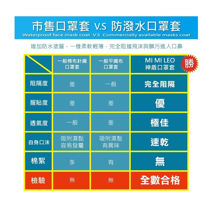 MI MI LEO台灣製專業頂級防潑水防護口罩套