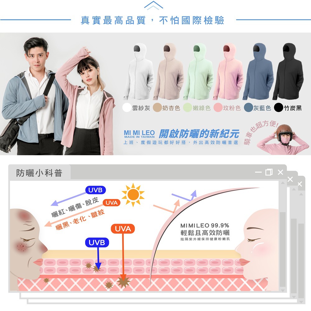 MI MI LEO 台灣製全面機能竹炭連帽防曬外套-加贈竹碳襪1雙送完為止