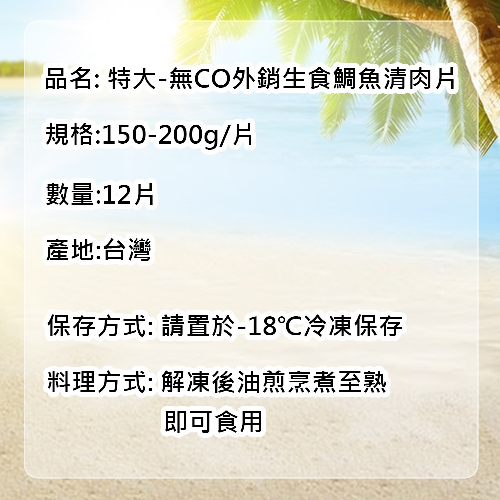 【築地一番鮮】特大-無CO外銷生食鯛魚清肉片X12片(150-200g/片)