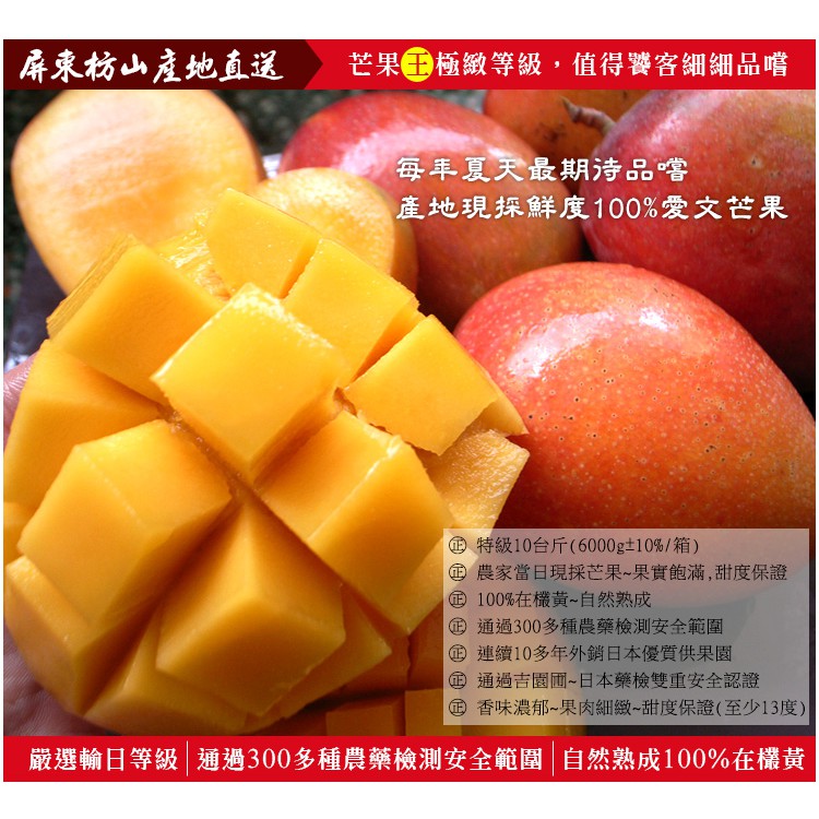 【築地一番鮮】產地直送嚴選優質愛文芒果10斤裝(20-26顆/箱)免運組