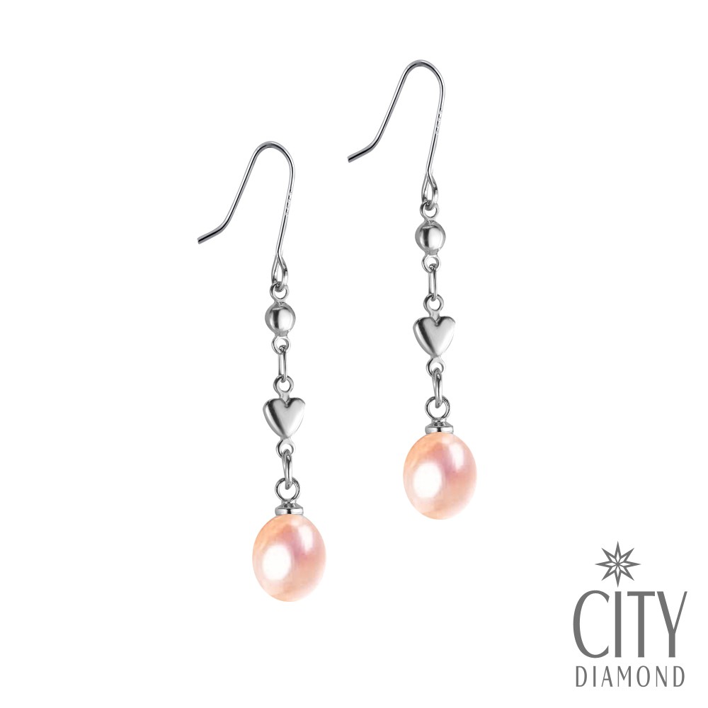 【City Diamond 引雅】網路獨家 天然粉橘珍珠愛心長掛垂式耳環(職人工藝系列)