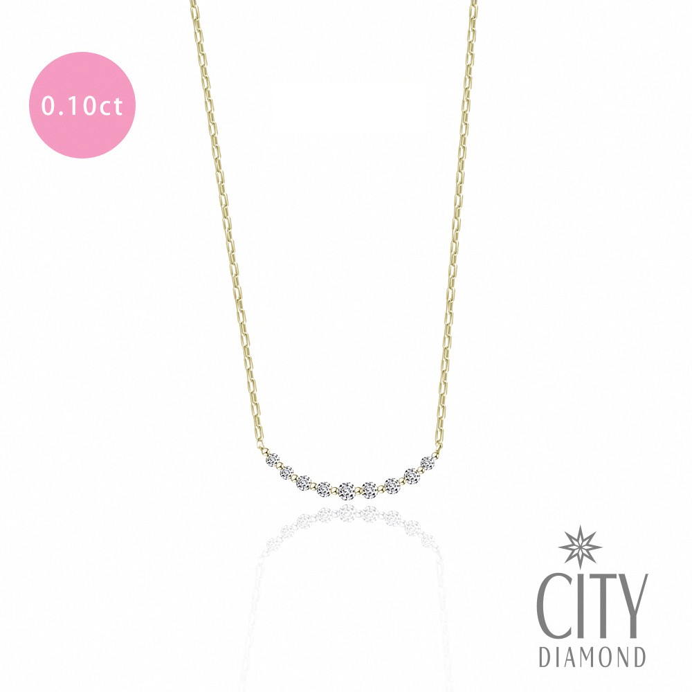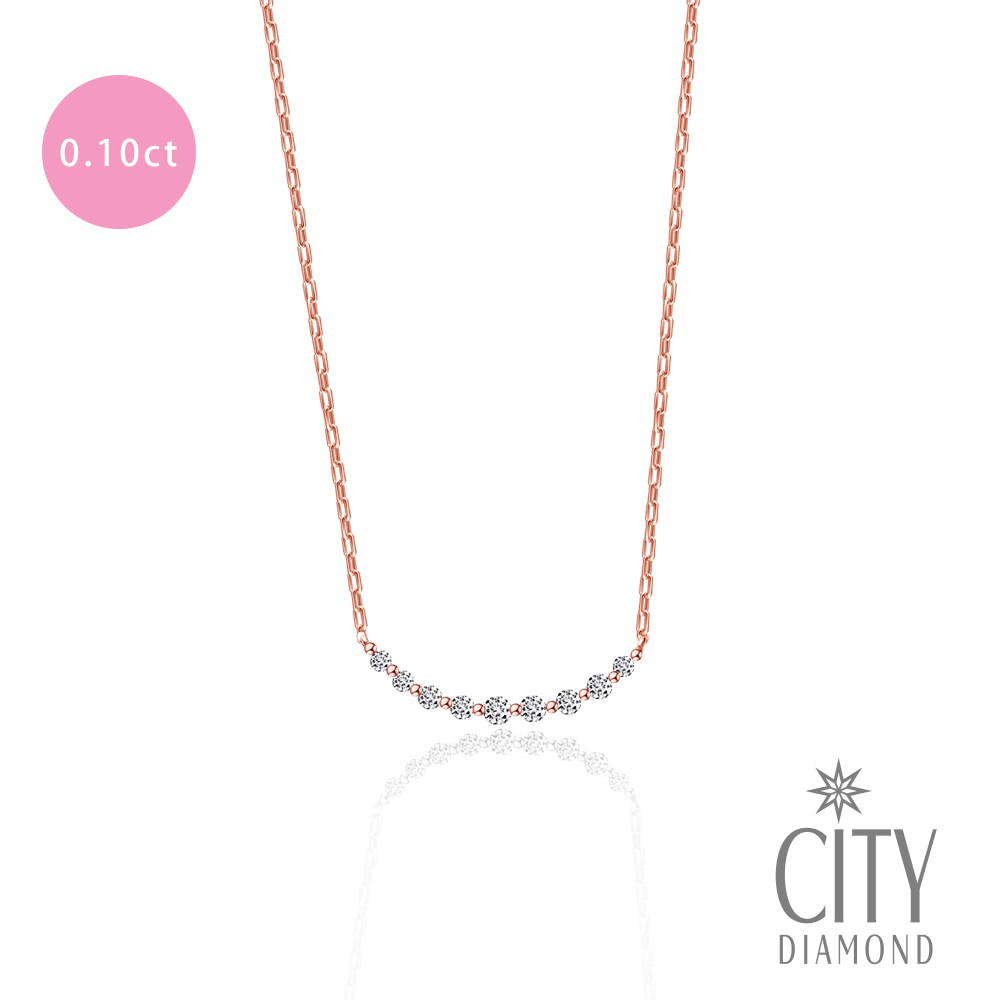 City Diamond 引雅 18K鑽石微笑10分9顆排鑽項鍊-鉑金 玫瑰金 黃K【東京Yuki系列】