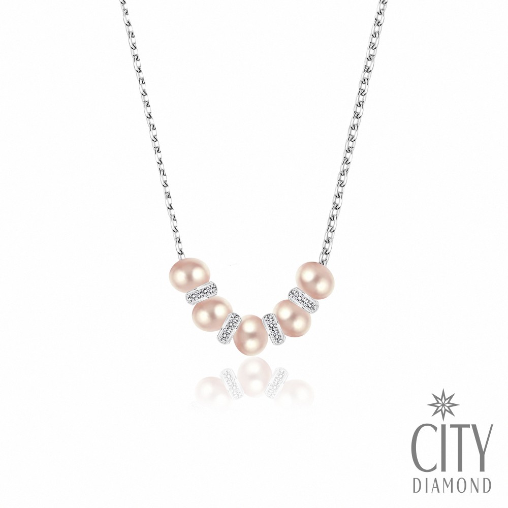 【City Diamond 引雅】網路獨家 5顆天然珍珠水鑽項鍊(職人工藝系列)